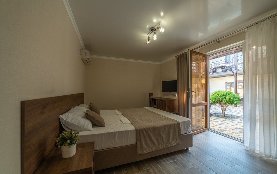 Двухэтажный дом разместился на Черноморской улице. В распоряжении гостей уютные номера с новым ремонтом разной категории комфорта. Во всех номерах есть мини-холодильник, телевизор, кондиционер и высокоскоростной интернет. Большинство номеров имеют собственные душевые комнаты, для остальных — санузел и душевые расположены на этаже. Для приготовления блюд гости могут воспользоваться общей кухней. В распоряжении гостей — большой охраняемый двор, открытый бассейн с зоной отдыха, кроме того, на территории обустроена детская площадка.