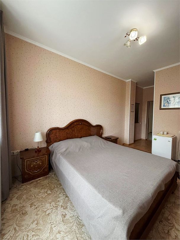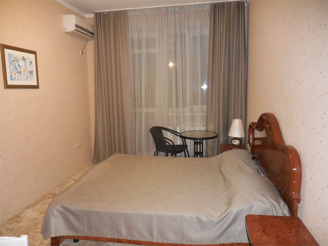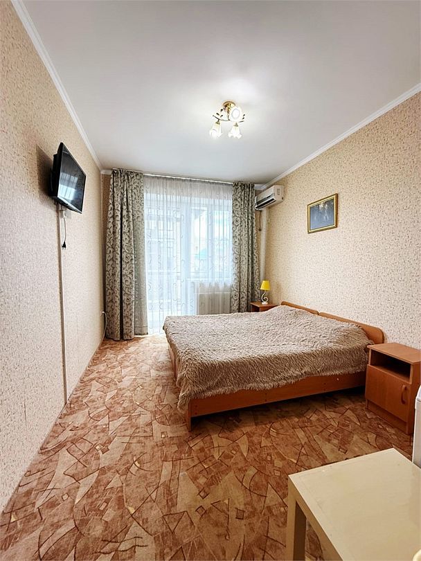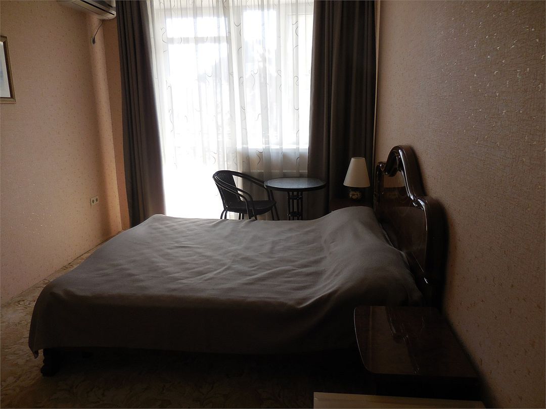 Номер с балконом . Санузел и душ в номере.Кровать двухспальная ; прикроватные тумбочки.Кондиционер; телевизор; холодильник. Столик и стулья.Шкаф для бельяУслуги и удобства