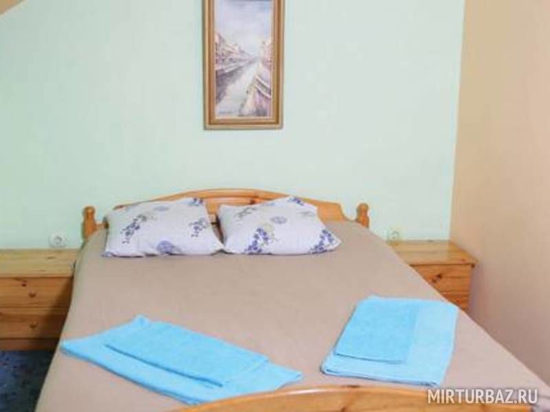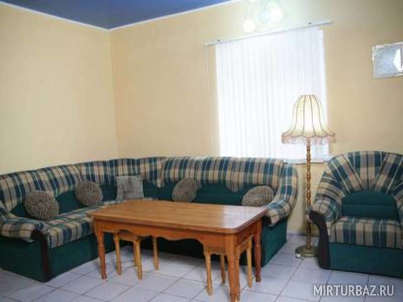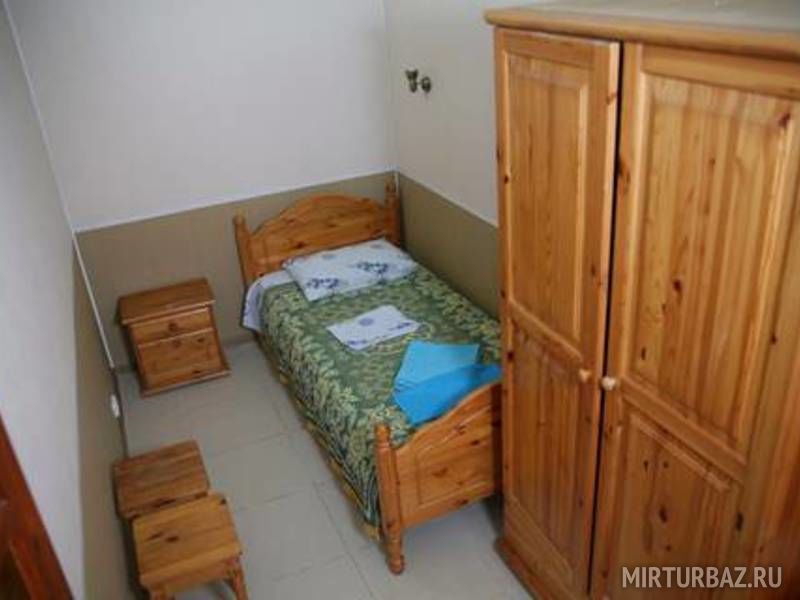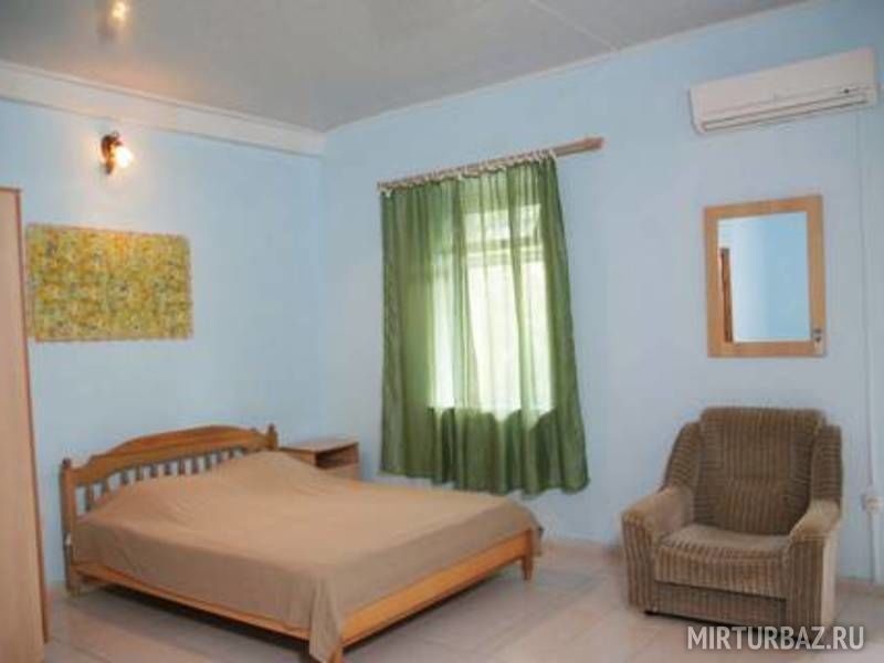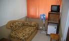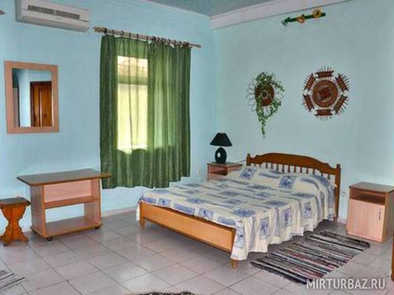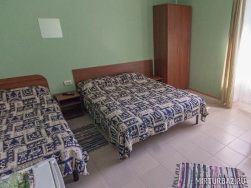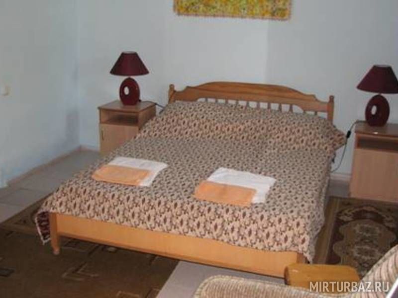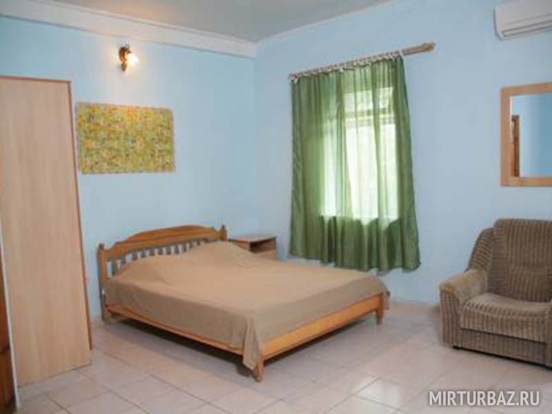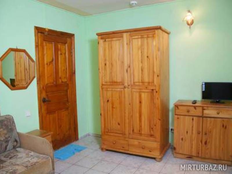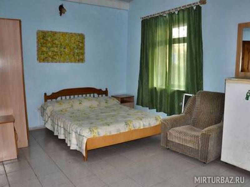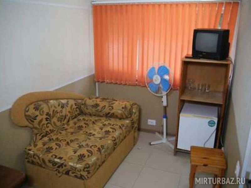 В номере двуспальная кровать, диван (малютка), прикроватные тумбочки шкаф, журнальный столик (не во всех номерах), стул. Из удобств: телевизор, холодильник, вентилятор, санузел совмещенный в номере.