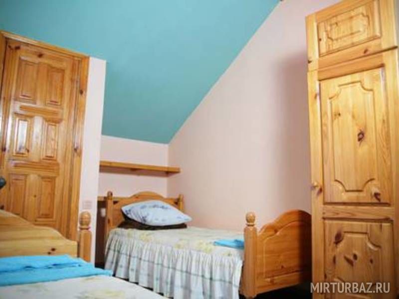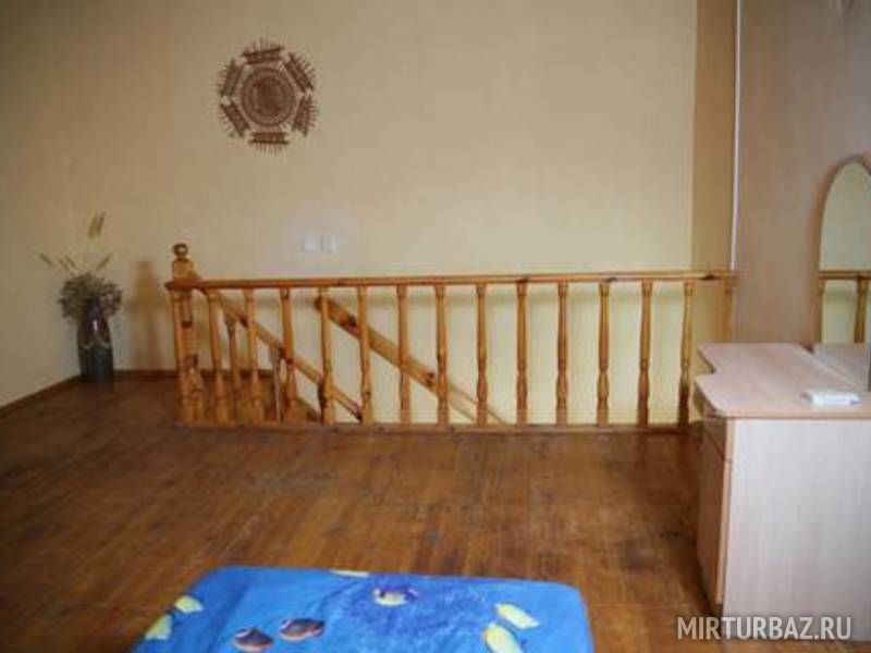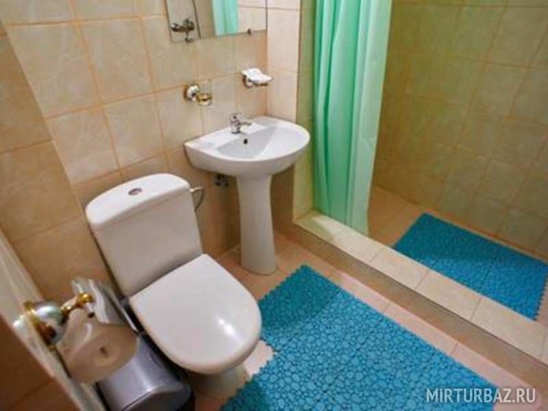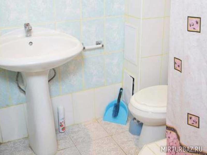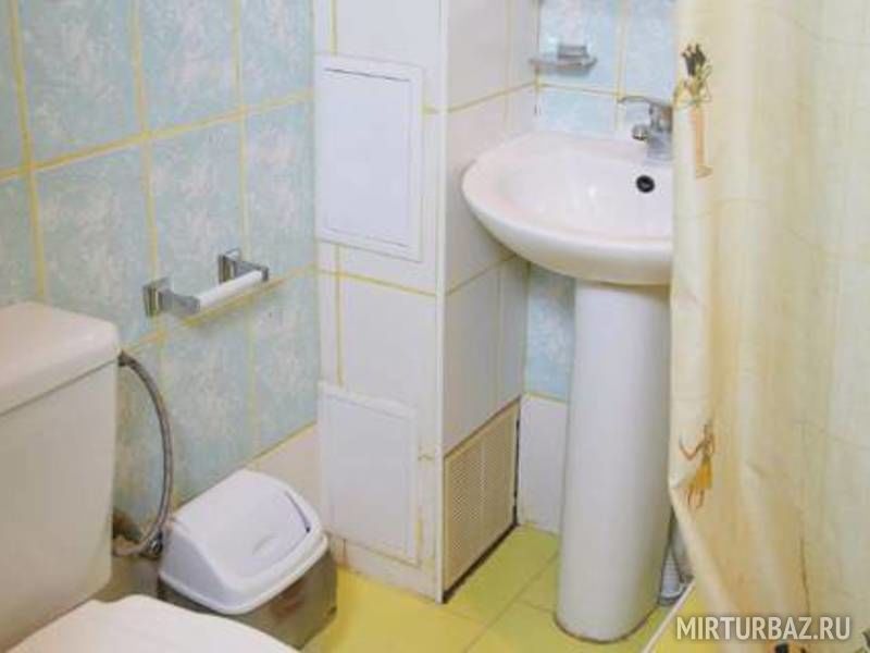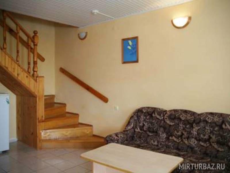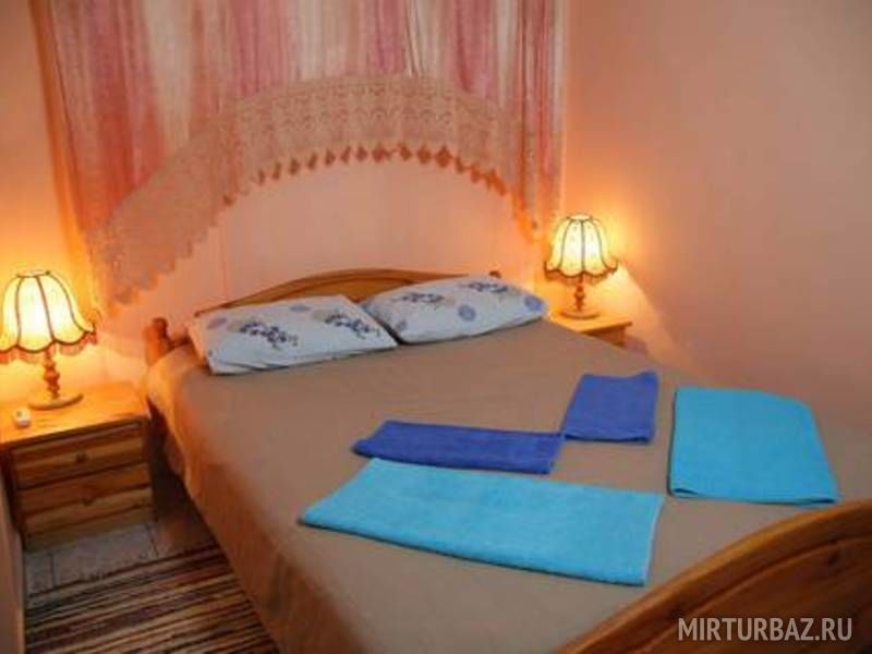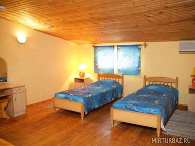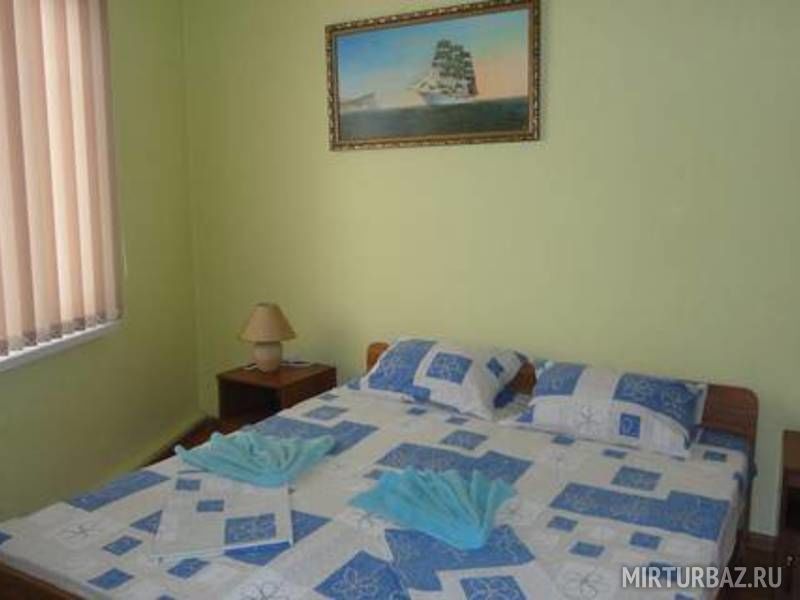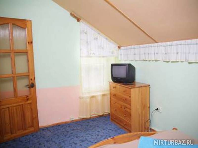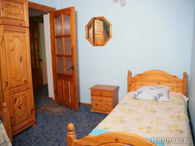 В номере двуспальная кровать, диван (малютка), прикроватные тумбочки шкаф, журнальный столик (не во всех номерах), стул. Из удобств: телевизор, холодильник, вентилятор, санузел совмещенный в номере.