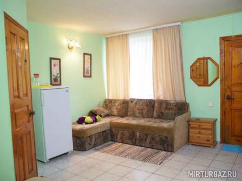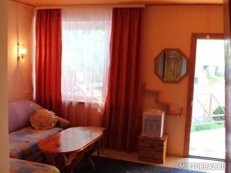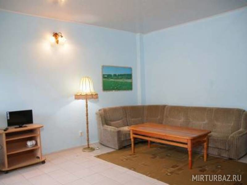 В номере двуспальная кровать, угловой диван-кровать, прикроватные тумбочки, шкаф, журнальный столик (не во всех номерах), стулья. Из удобств: телевизор, холодильник, вентилятор, санузел совмещенный в номере.