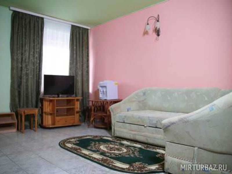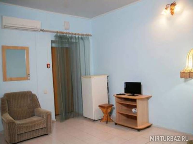 В номере двуспальная кровать, диван-кровать, диван-малютка, прикроватные тумбочки, шкаф, журнальный столик (не во всех номерах), стулья. Из удобств: телевизор. холодильник, кондиционер, санузел совмещенный в номере.