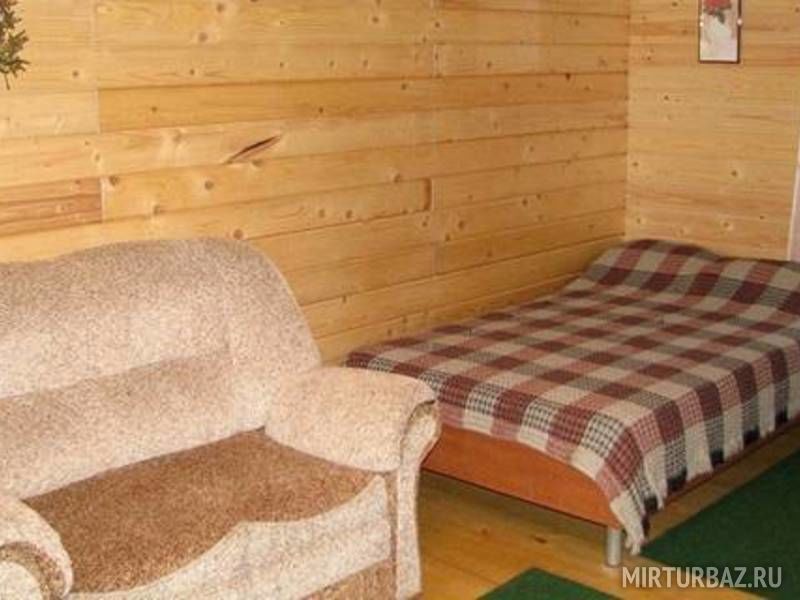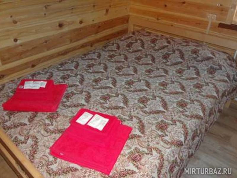 В домиках кровати, прикроватные тумбочки, кресло, диван, журнальный столик, стулья, шкаф для одежды. Из удобств: телевизор, холодильник, кондиционер, санузел совмещенный в доме.