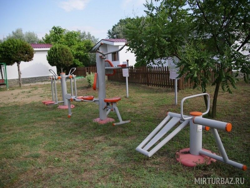 Благодаря тому, что территория базы отдыха довольно большая, здесь могут позволить себе установку зон для малышей. Несколько различных качелей, горки, стенки, лабиринты — все это ежедневно доступно для детей.