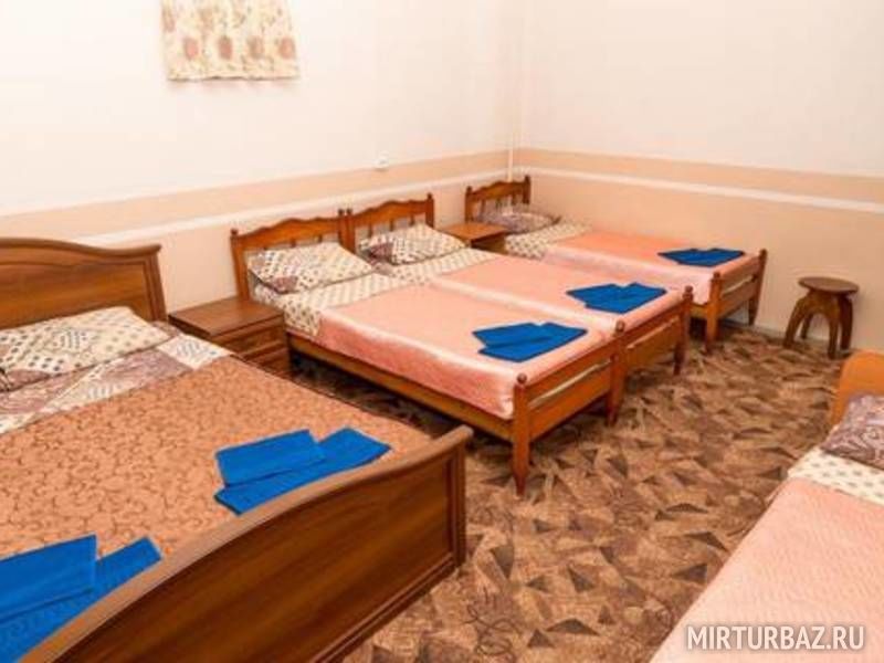 В номере двуспальная или две односпальные кровати, прикроватные тумбочки, шкаф, журнальный столик (не во всех номерах). Из удобств: телевизор, холодильник, вентилятор, санузел совмещенный в номере.