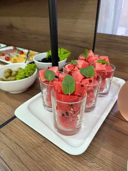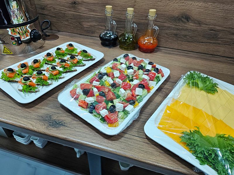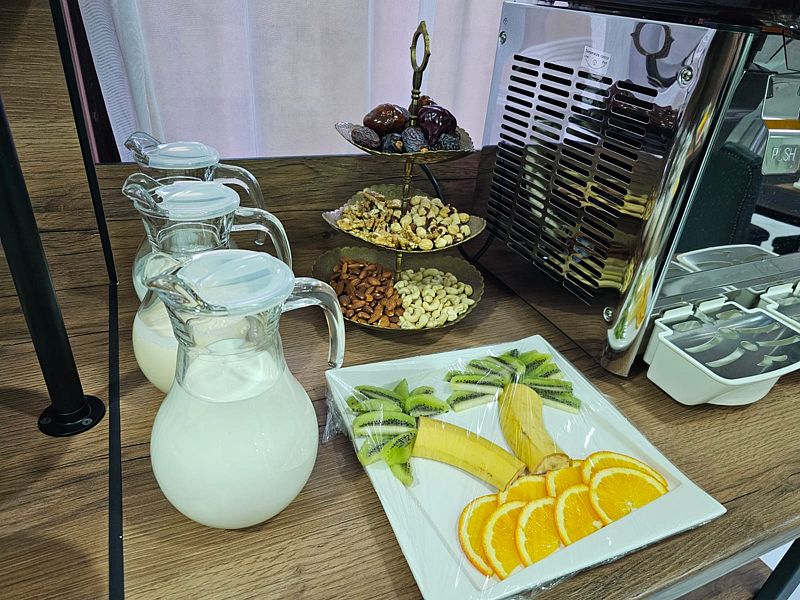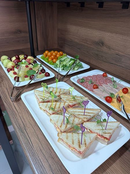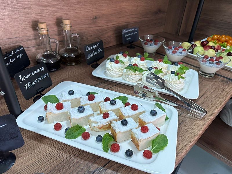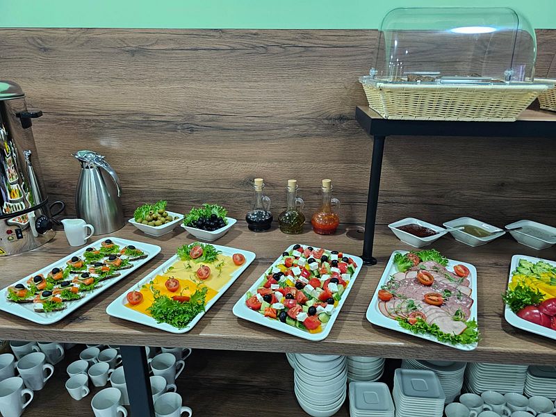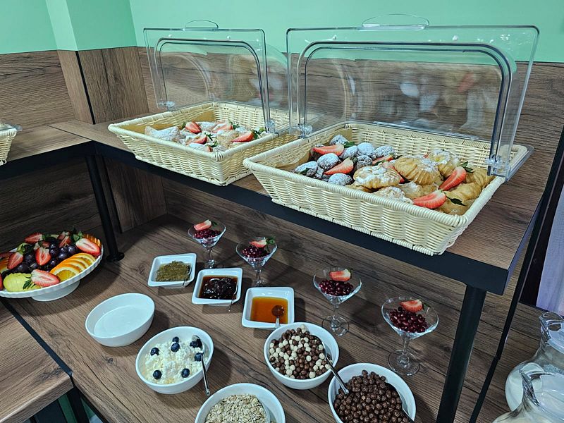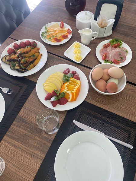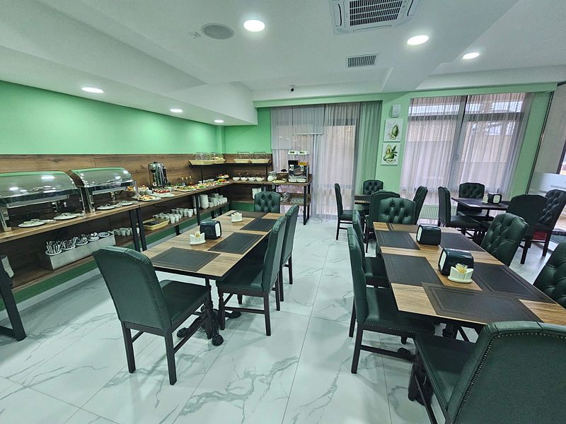 Уютный обеденный зал отеля приятно удивит гостей. А квалифицированный персонал кухни порадует разнообразием завтраков и не оставит равнодушным даже гурманов.