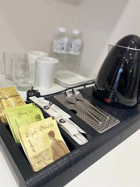 Номер оснащен TV 45', кондиционером, телефоном, чайной станцией и холодильником. В ванной комнате с подогреваемым полом и современной душевой кабиной есть фен и необходимые гигиенические принадлежности.