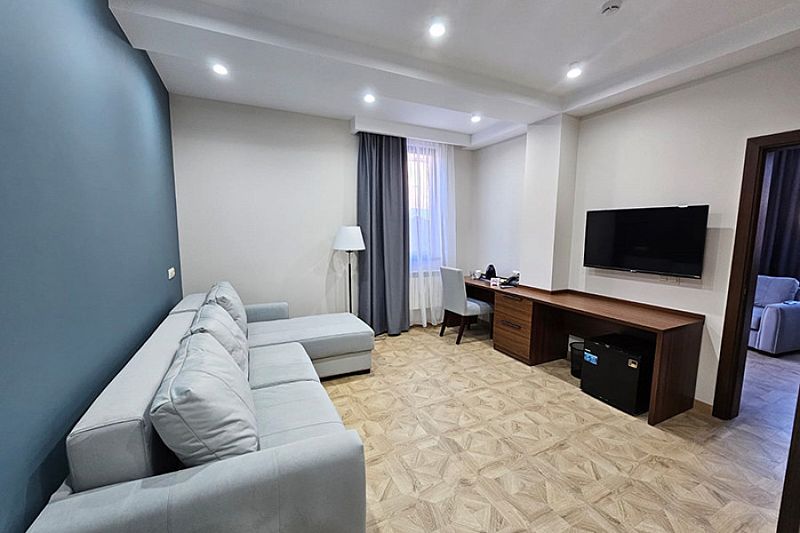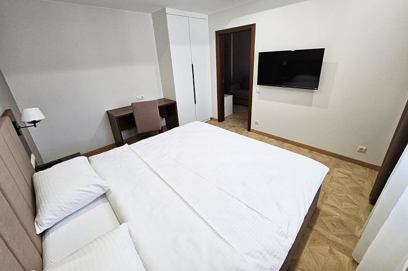 Двухкомнатный номер площадью 40-45 кв.м идеально подойдет для семейного отдыха. В номере двуспальная кровать 200*200см.