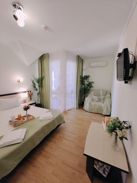 В номере имеются все удобства: холодильник, телевизор, санузел. Кондиционер есть в каждой комнате.В номере есть кухня для самостоятельного приготовления.