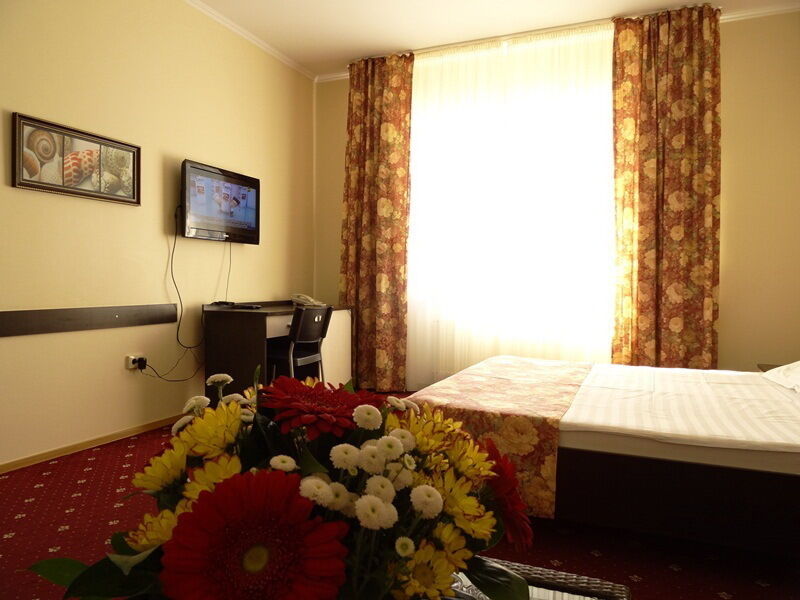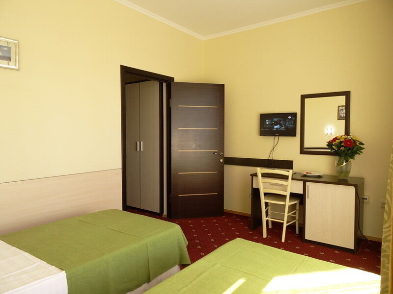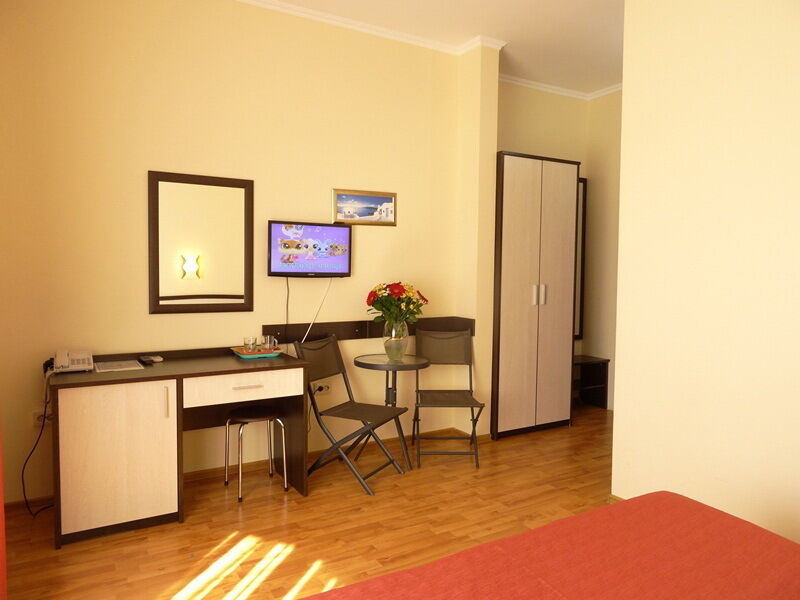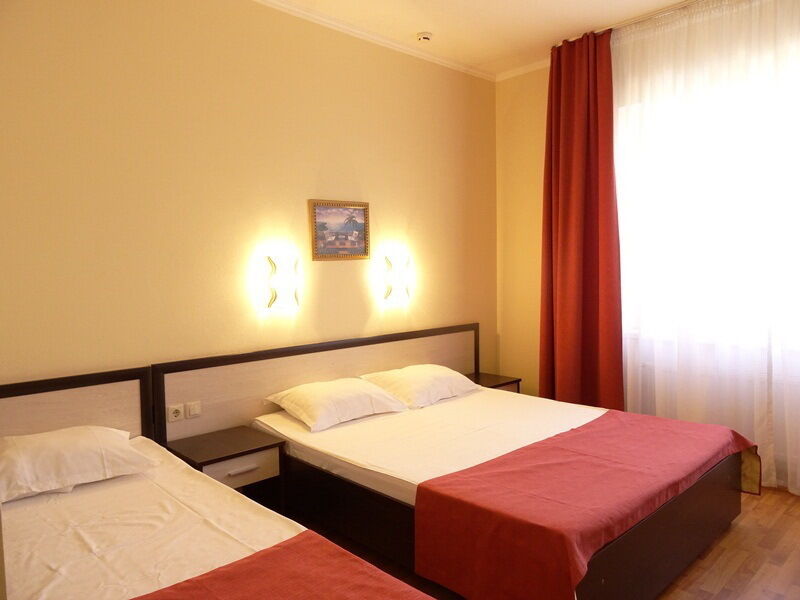 3-х местный номер «Полулюкс» с дополнительным местом - однокомнатный четырехместный номер (4 основных места). Площадь номера 22 кв.м. В номере: 2-х спальная кровать, 1-на спальная кровать, кресло-кровать, платяной шкаф, тумбочки, туалетный и журнальный столик. Каждый номер оборудован ванной комнатой с душевой кабиной. В номере имеется: сплит-система, телевизор ЖК, холодильник, эл. чайник, телефон и сейф.