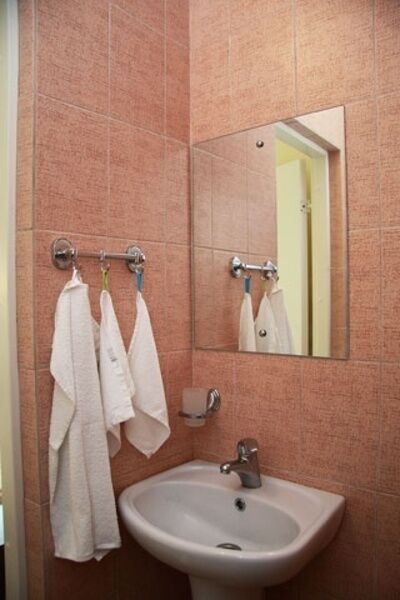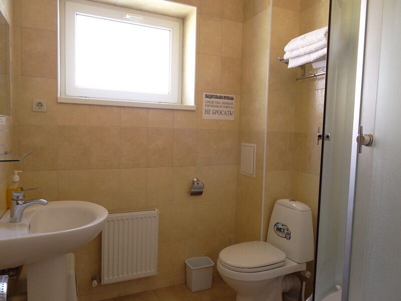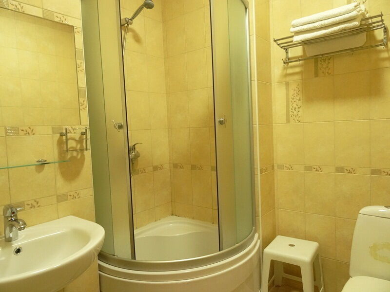 3-х местный номер «Полулюкс» - однокомнатный трехместный номер (3 основных места) с возможностью размещения 1 человека на дополнительном месте (раскладная кровать). Площадь номера от 19 кв.м. до 20 кв.м. В номере: 2-х спальная кровать, 1-на спальная кровать, платяной шкаф, тумбочки, туалетный и журнальный столик. Каждый номер оборудован ванной комнатой с душевой кабиной. В номере имеется: сплит-система, телевизор ЖК, холодильник, эл. чайник, телефон и сейф.
