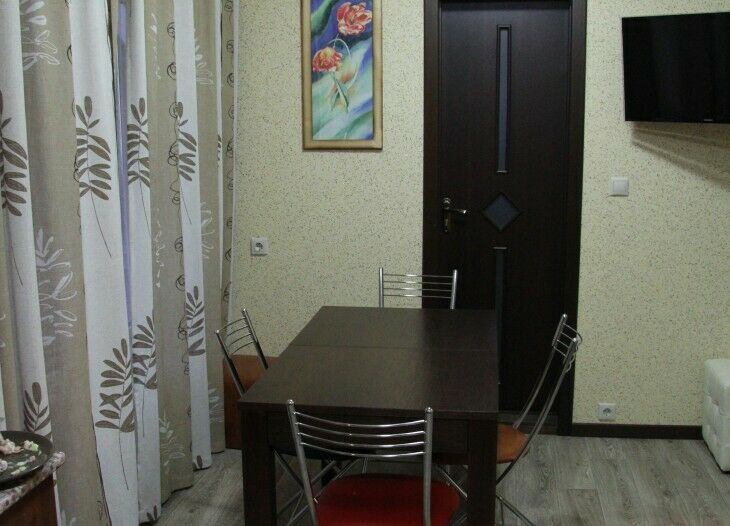 с прихожей и санузлом. Теплые полы, плоские телевизоры, стол и стулья, Wi-Fi.