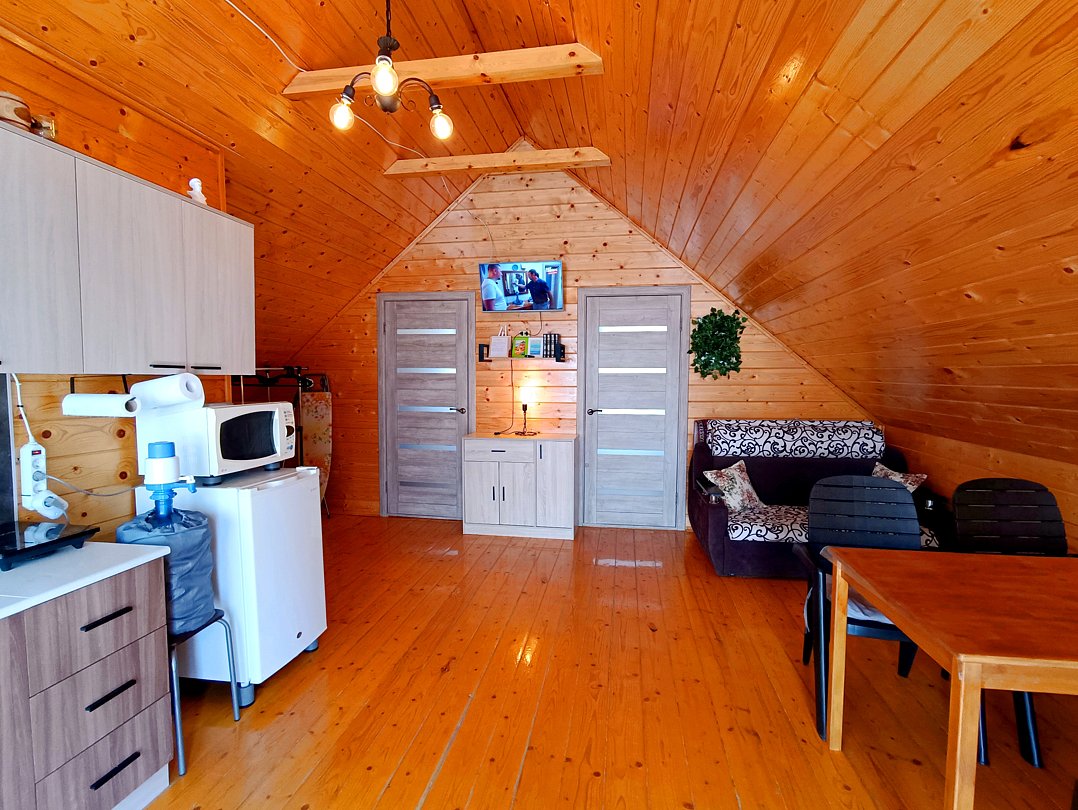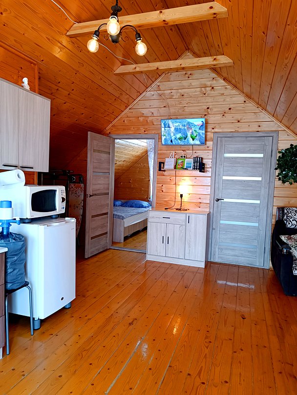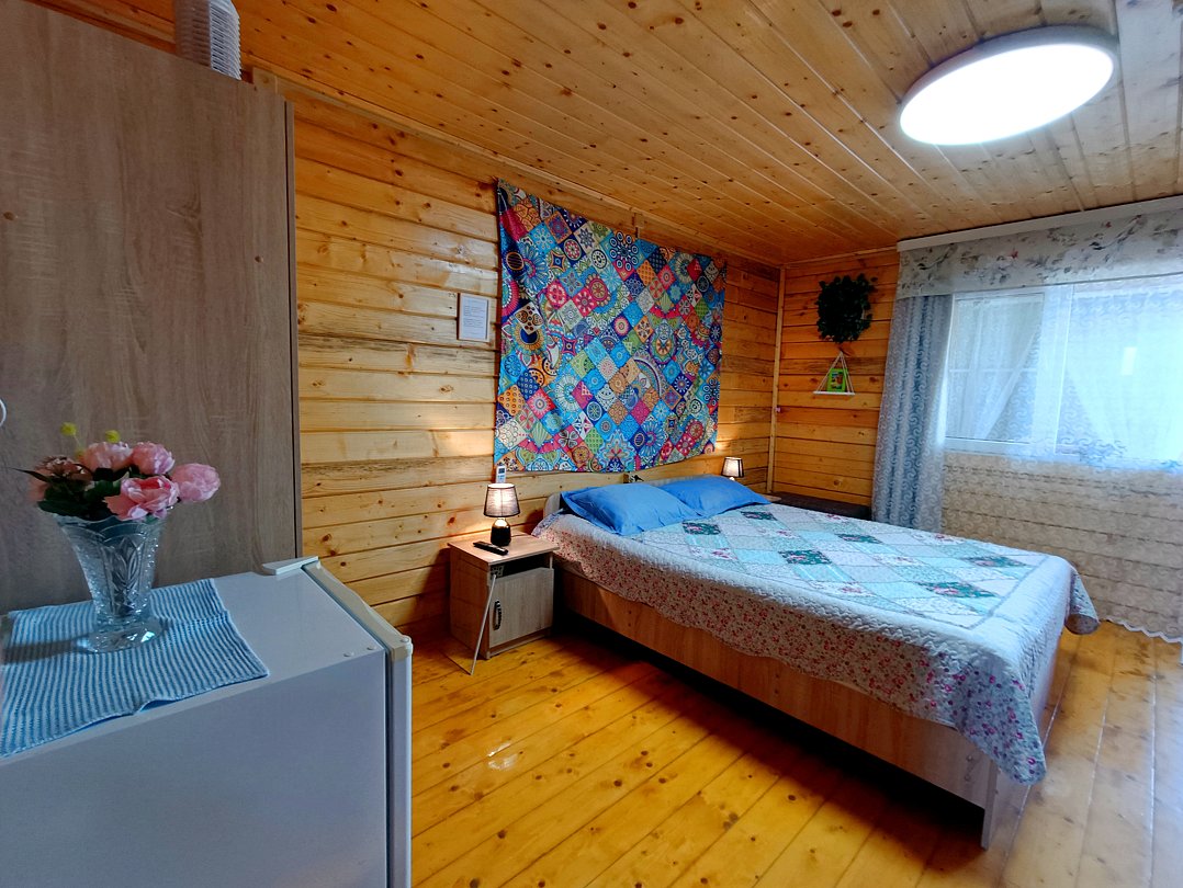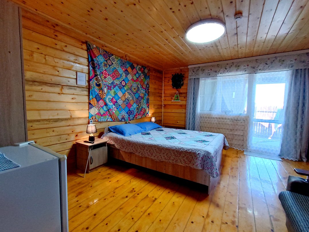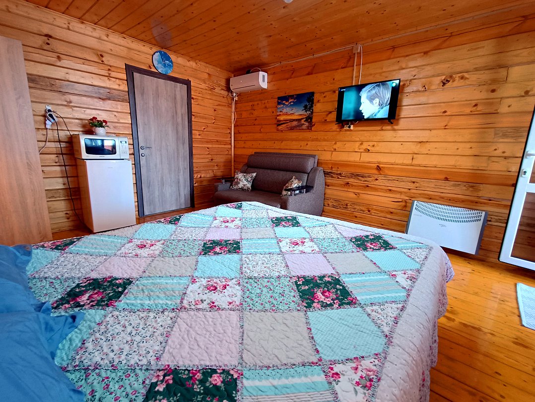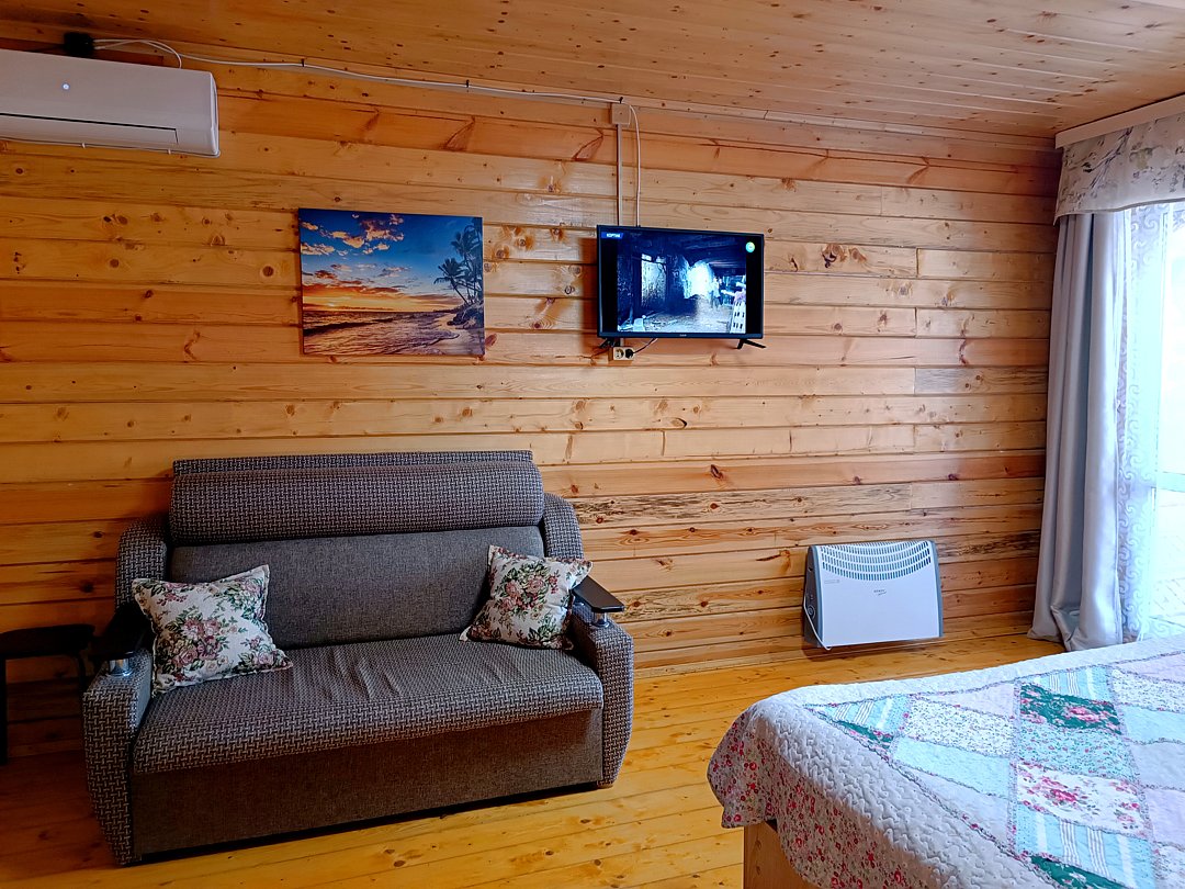 Номер в эко-доме под ключ рассчитан на проживание до 2 основных гостей и дополнительно до 2 благодаря наличию дивана.