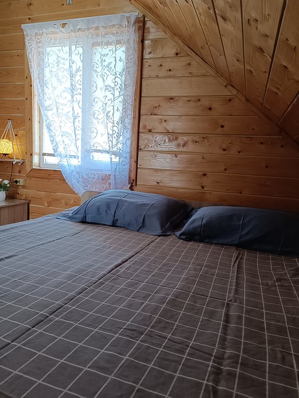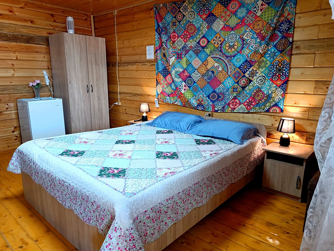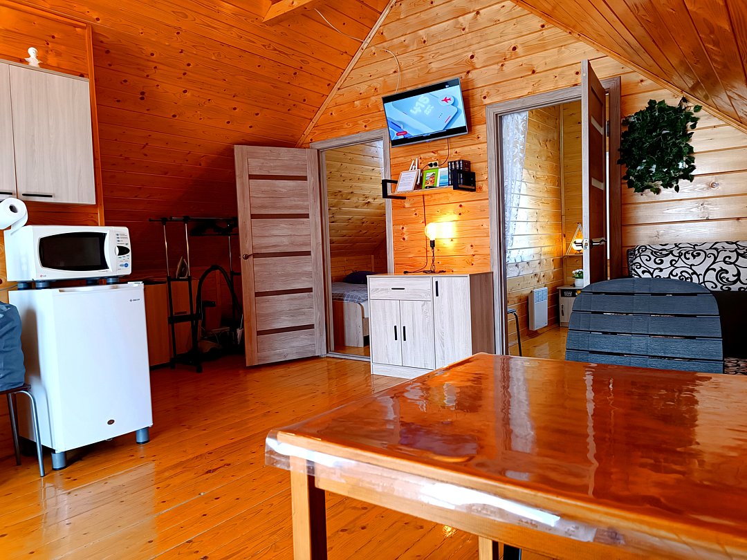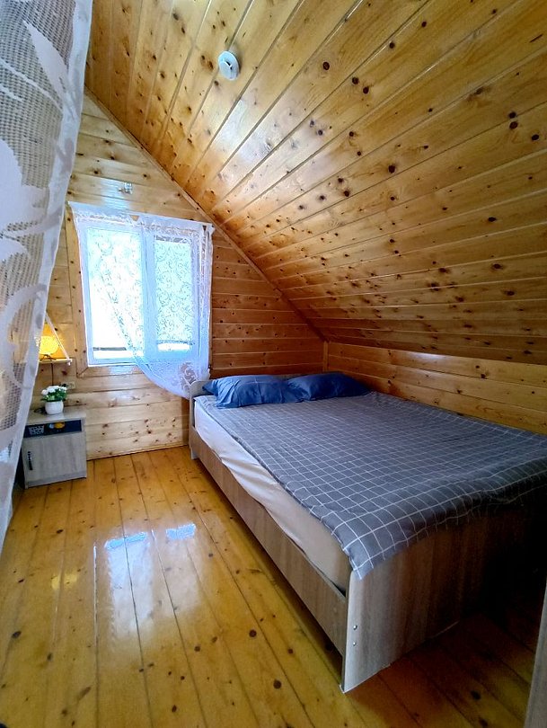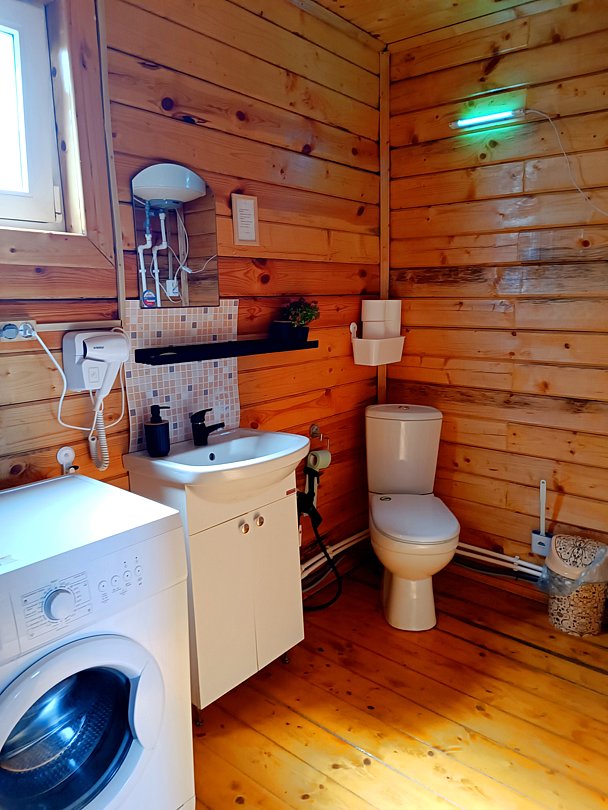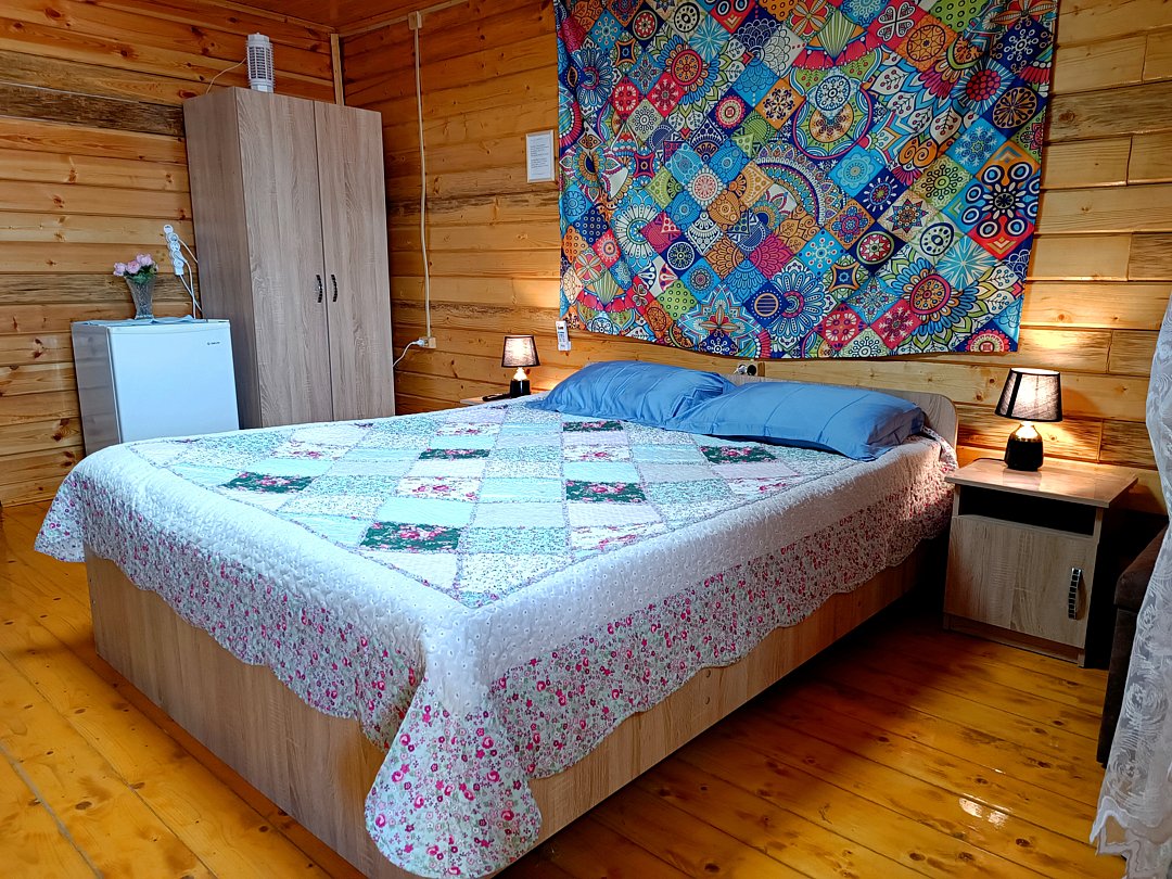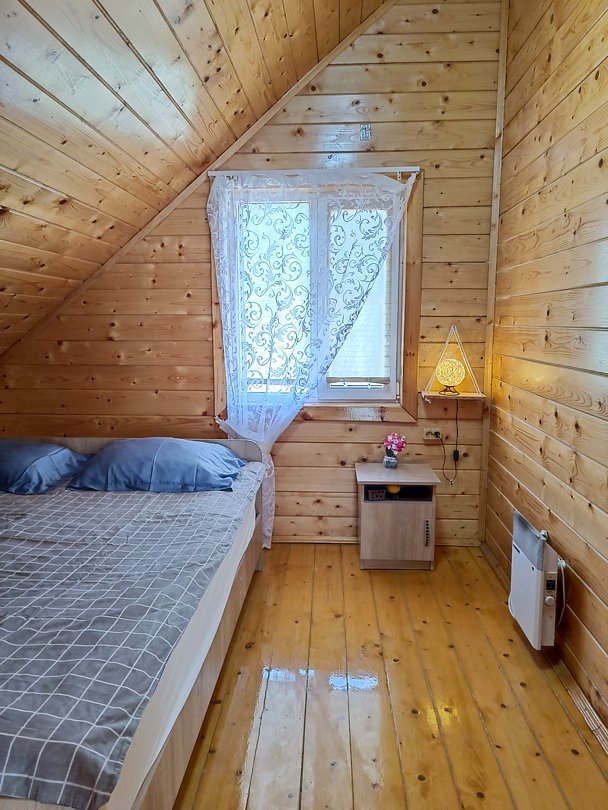 Номер в эко-доме под ключ рассчитан на проживание до 2 основных гостей и дополнительно до 2 благодаря наличию дивана.