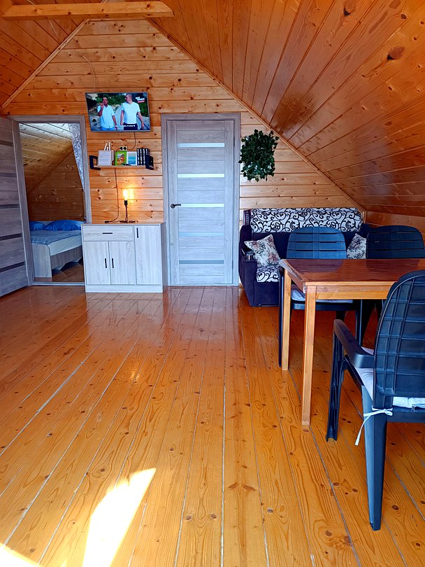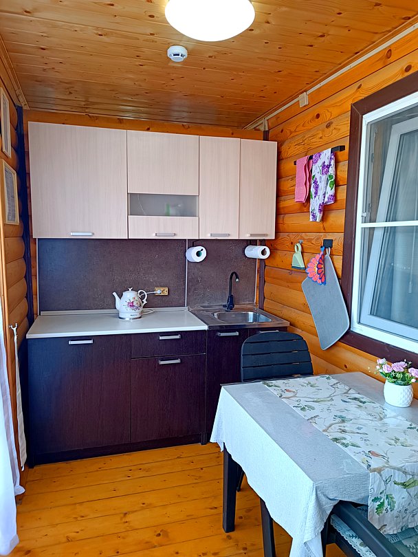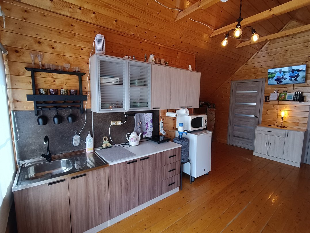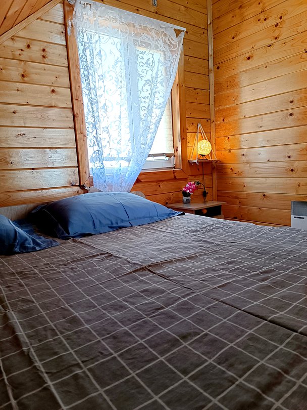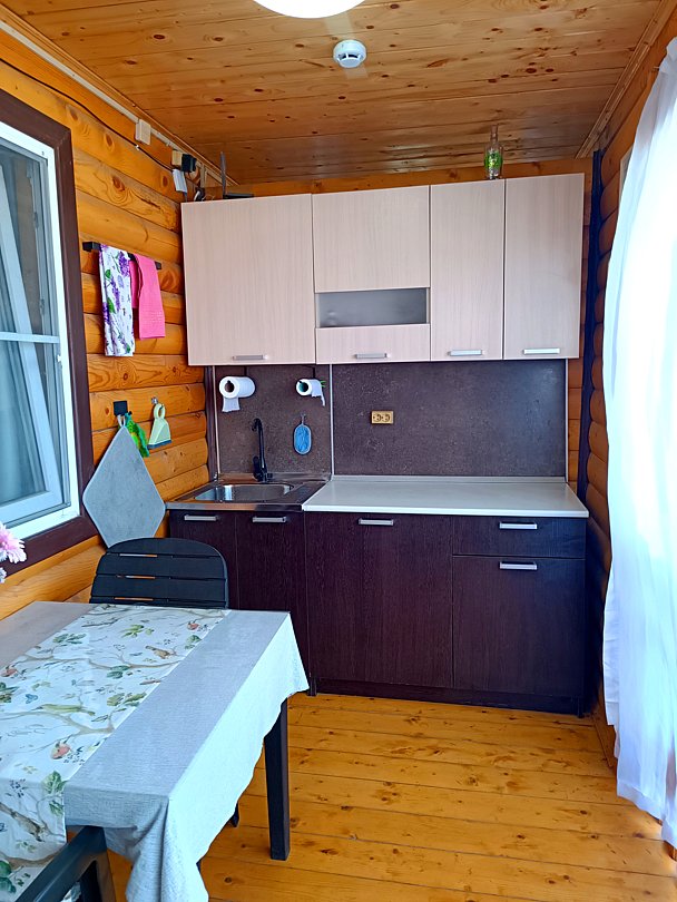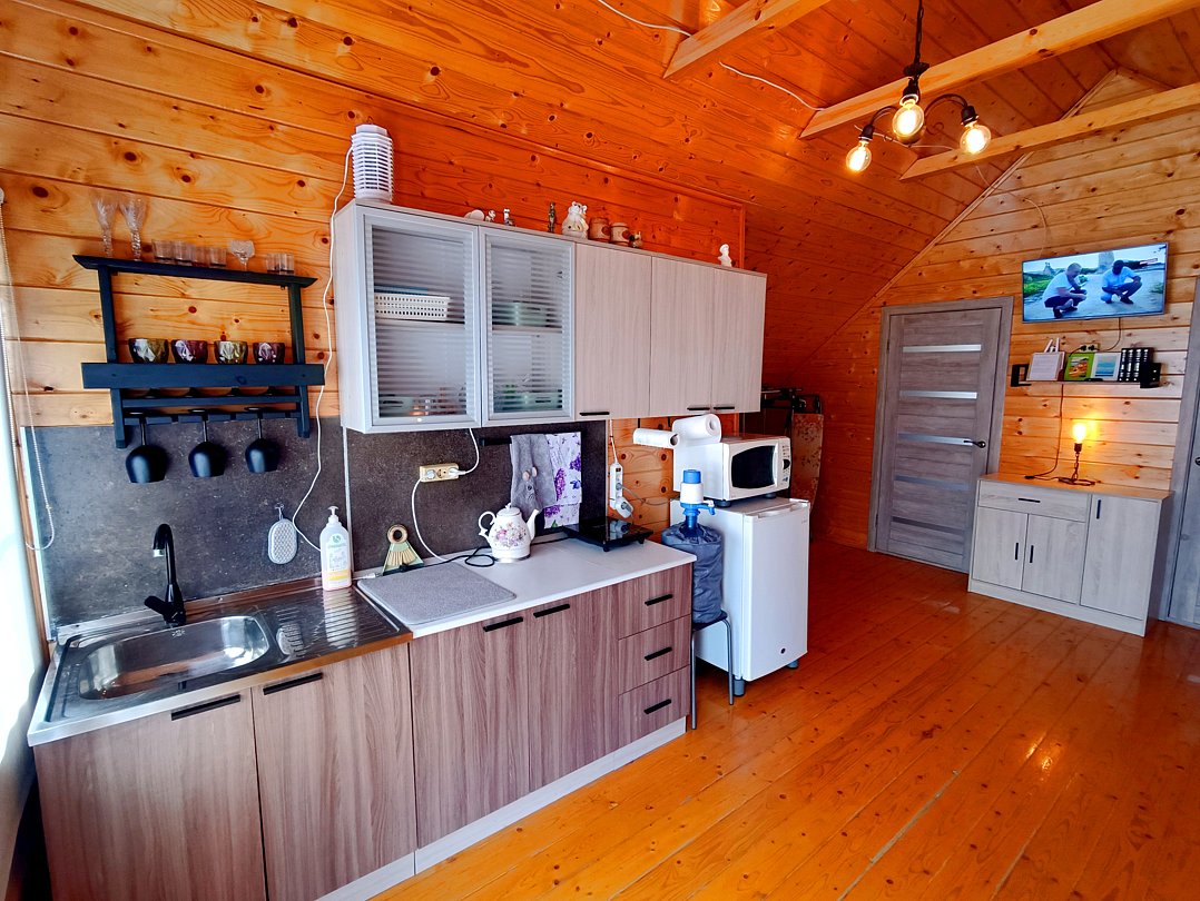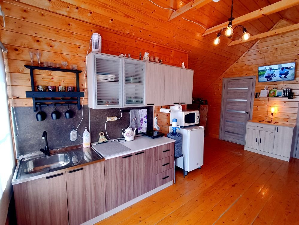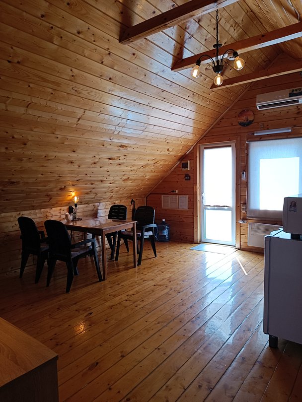 Номер в эко-доме под ключ рассчитан на проживание до 2 основных гостей и дополнительно до 2 благодаря наличию дивана.