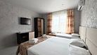 Двуспальная кровать или две односпальные кровати, шкаф, тумбочка, стол, телевизор, мини-холодильник, сплит-система, с/у совмещен с душем (бортики),Wi-Fi. Площадь номеров от 18 до 20 кв.м. Общий балкон.