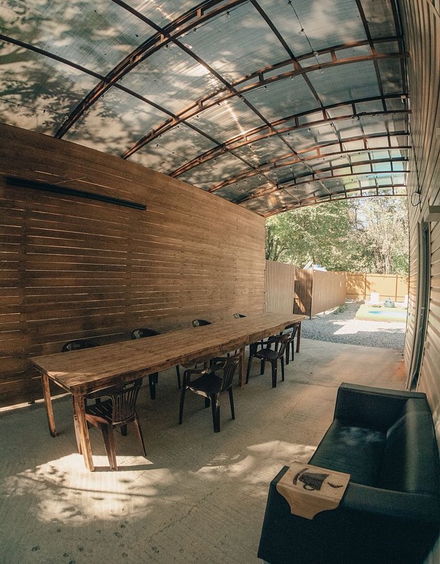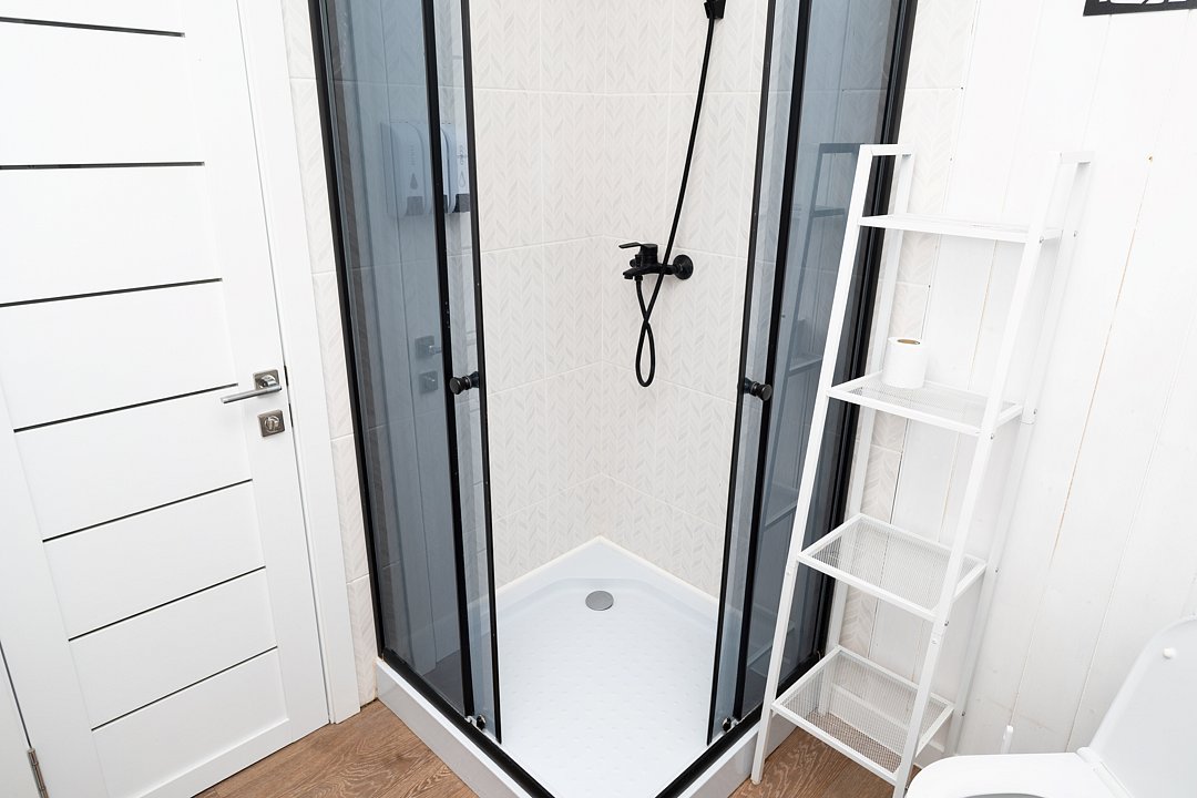 Внутри — три изолированные спальни, две ванных комнаты и просторная кухня-гостиная, оснащенная всем необходимым: современная техника, включая посудомоечную машину, холодильник, микроволновку и кулер с питьевой водой. Для развлечений предусмотрены телевизор, интернет Wi-Fi, сплит-система, а также настольные и активные игры.