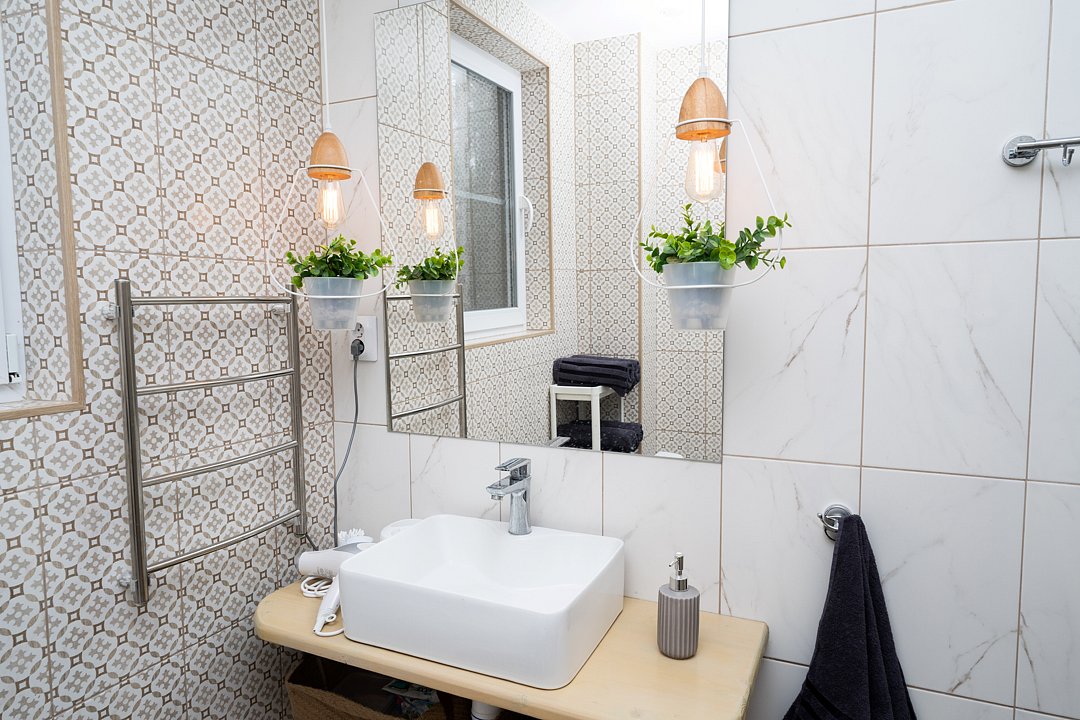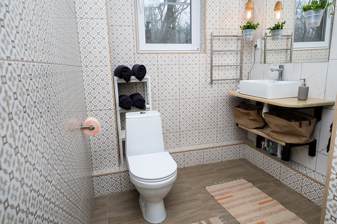В доме есть телевизор, кондиционер, доступ в интернет, настольные и подвижные развлечения. В ванной комнате: гель для душа, шампунь, кондиционер, фен, полотенца (по три штуки на каждого гостя). На территории: терраса с большим пятиметровым столом. Мангальная зона: шампура, решетки. Бассейн с подогревом и подсветкой. Есть подвесные качели-гнезда и кресло-кокон. Парковка на три автомобиля.
