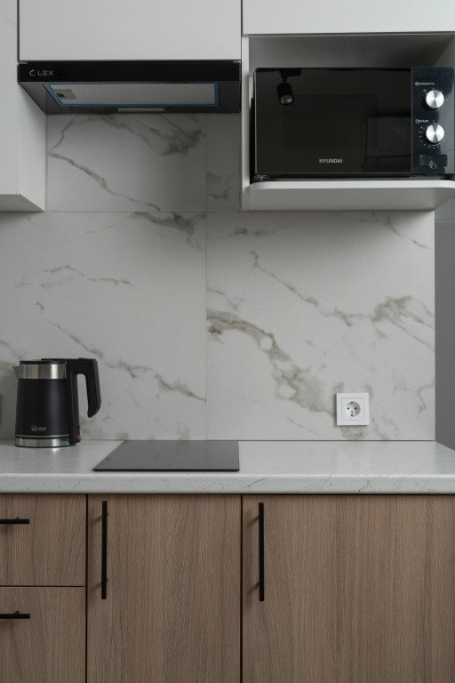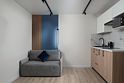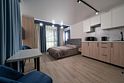 Просторная комната выполнена в современном стиле и включает все необходимое для комфортного проживания: удобную двуспальную кровать, полноценное дополнительное спальное место, оборудованную кухонную зону и ванную комнату. Индивидуальная терраса с видом на море. Номер предназначен для проживания круглый год. с теплым полом.