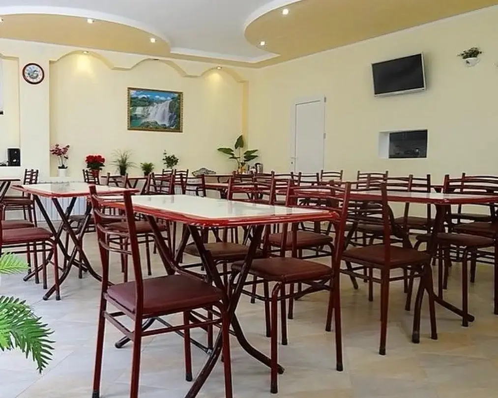 Гостевой дом «Дружба» приглашает отдыхающих в уютную столовую, где с первого июня по тридцать первое сентября предлагается разнообразное и сбалансированное меню, от утреннего завтрака до вечернего ужина, создавая атмосферу домашнего тепла и комфорта.