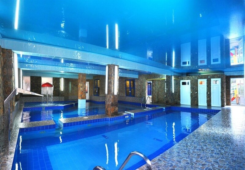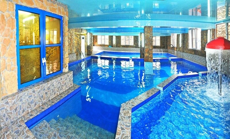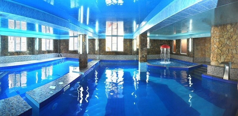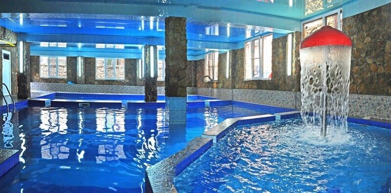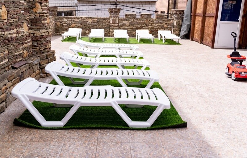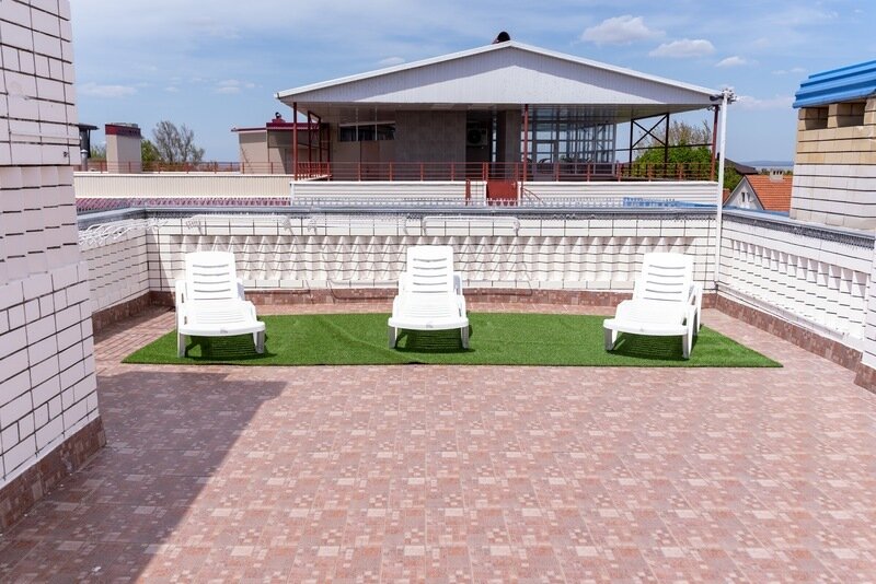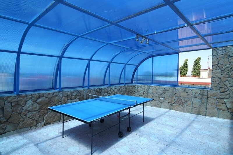 На облагороженной территории есть детская площадка, бассейн с водной горкой, бильярд и теннис для проведения досуга, площадка для загара.