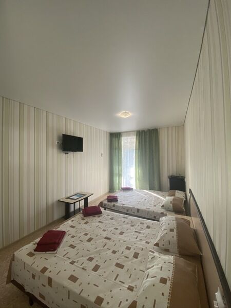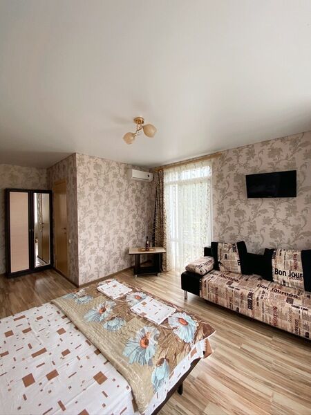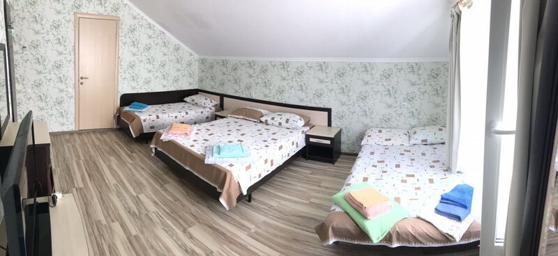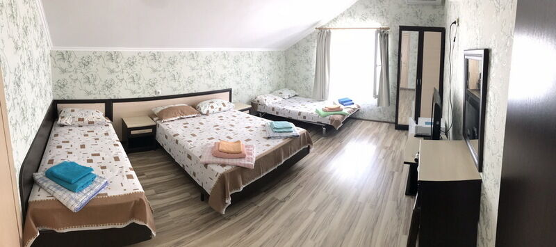 Отдыхали в июне-июле 2019 с 2х летним сыном и родителями, у нас был 3-х местный номер и кроватка для мелкого абсолютно без всяких доплат (также можно взять коляску), номер просторный, 1 двухспальная кровать и 1 односпальная, санузел в номере, телевизор, кондиционер, шкаф, туалетный столик. ухоженная территория, общая кухня под крытым навесом на улице с необходимой посудой, возможно пользование мангалом. Уборка в номере по желанию хоть каждый день, услуги стирки за небольшую доплату. Юлия и Владимир очень гостеприимные хозяева и любая просьба или проблема решается очень быстро, Оксана их правая рука так же очень отзывчивая и приятная уборка всегда на высоте и в номере и в местах общественного пользования. Гости в основном все тихие семейные пары либо семьи с детьми. Есть игровая зона для детей и по вечерам мультики на большом проекторе. Есть место для парковки машины. Рядом с домом волейбольная площадка и каждый день там играют все желающие и хозяева дома. На соседней улице уютная столовая. До моря идти мин 15-20 никуда не торопясь, пляж галечный, вода чистая. Если на море шторм модно покупаться на Кипарисовом озере недалеко от дома или съездить в Большой Утриш в дельфинарий или в Анапу в аквапар=))) Спасибо за приятный отдых если снова будем в Сукко то обязательно у Вас =))))