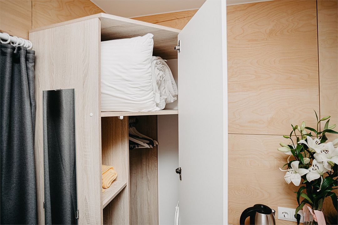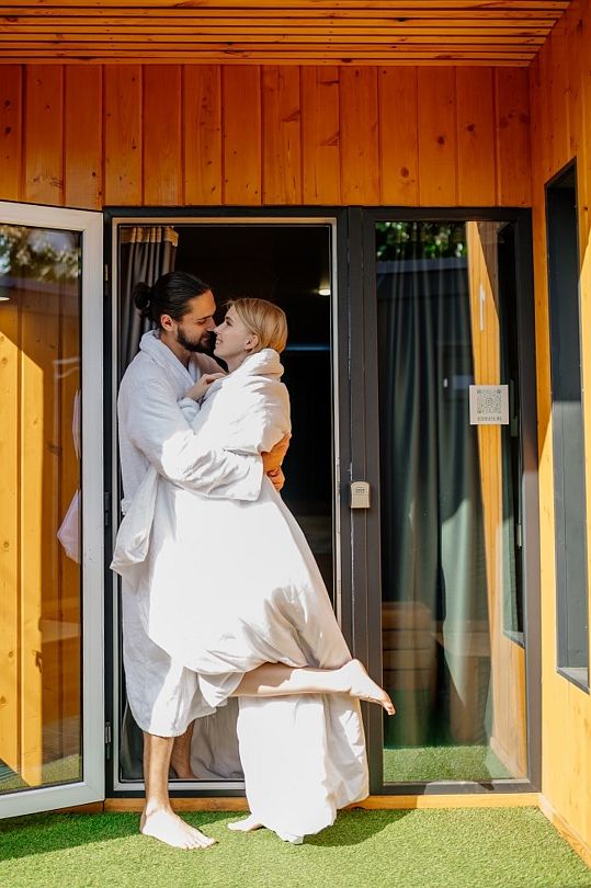 Wi-Fi, интернет, кондиционер, кулер, фен, микроволновая печь, утюг, теплый пол, банные принадлежности, банные полотенца, тапочки, сауна, терраса, кровать «King size», гладильная доска, стулья, шкаф для одежды, вешалки, набор посуды, стиральная машина, унитаз, отопление, отдельный вход в номер, душ, вид во двор, стаканы, кухонная утварь, столовые приборы, стиральная машина и сушилка, стол, туалетные средства, туалет, сушилка для белья, телевизор с плоским экраном, мини-холодильник, москитная сетка, телевизор со Smart TV, номер для некурящих, антибактериальное средство для рук, без питомцевВ домике