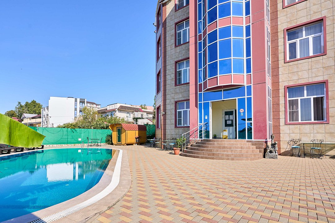 Четырехэтажный корпус располагается на благоустроенной закрытой территории. Гостей ожидают просторные комфортабельные номера трех категории. В номерах подключена сплит-система и есть все необходимое для хорошего отдыха: собственная ванная комната, плазменный телевизор, фен, мини-холодильник. Из номеров, расположенных на верхних этажах, открывается вид на море.