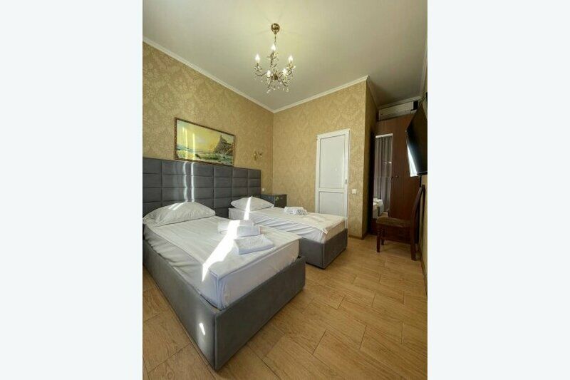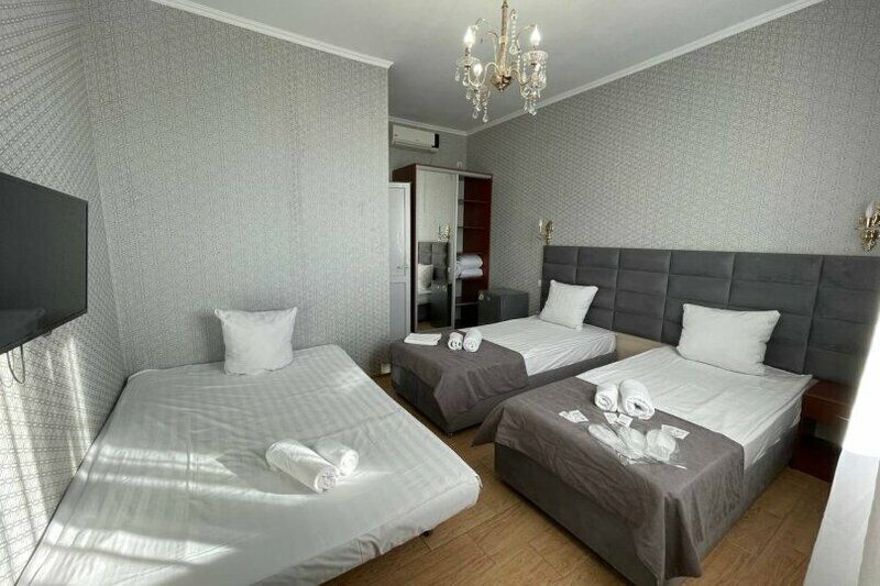 Четырехэтажный корпус гостевого дома разместился на закрытой территории в квартале с малоэтажной застройкой. В распоряжении гостей двух- и трехместные номера со светлым приятным интерьером. В комнатах есть собственный санузел, кондиционер, плазменный телевизор, фен.