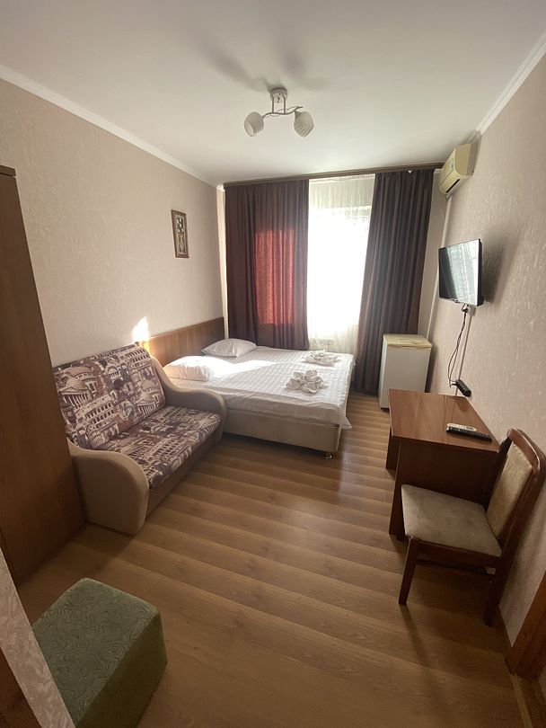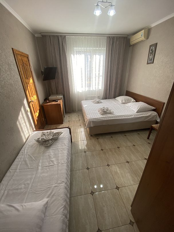 Гостевой дом разместился на закрытой территории в трехэтажном доме. В распоряжении гостей – 2-х, 3-х и 4-местные номера разной категории комфорта. В каждом номере есть телевизор, мини-холодильник, кондиционер и санузел с душем высокоскоростной интернет, санузел с душем.