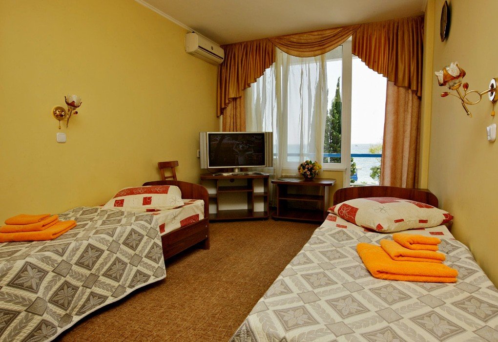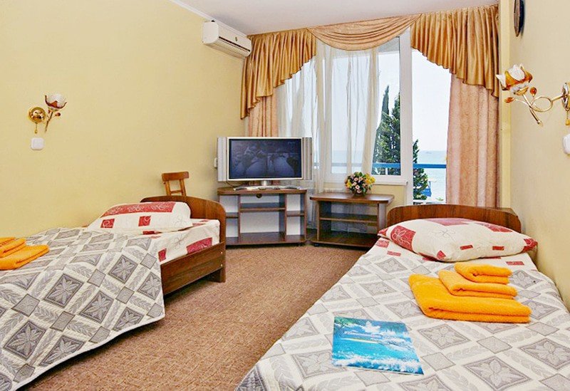 Тип пляжа: галечный, собственный, оборудованныйИнфраструктура: лежаки, зонтики, шезлонгиРасположение: в пешей доступностиПляж пансионата расположен на живописном берегу в 40 метрах от спального корпуса. Протяженность пляжной галечно-песочной полосы 400 метров.