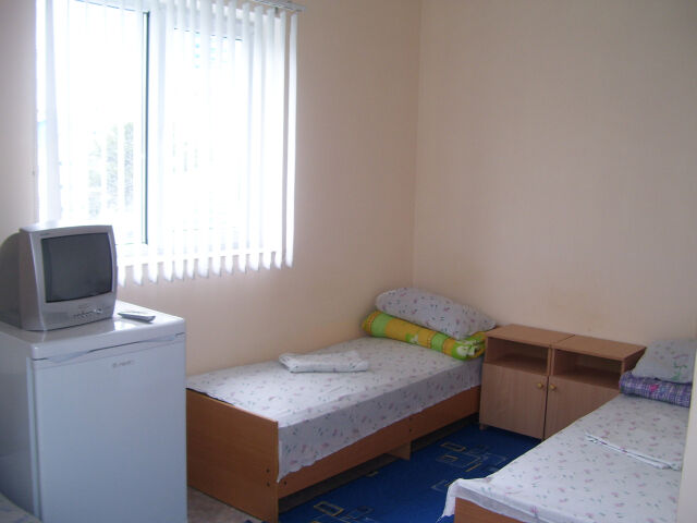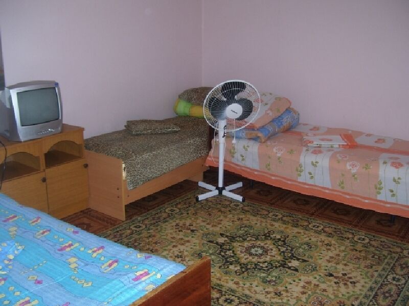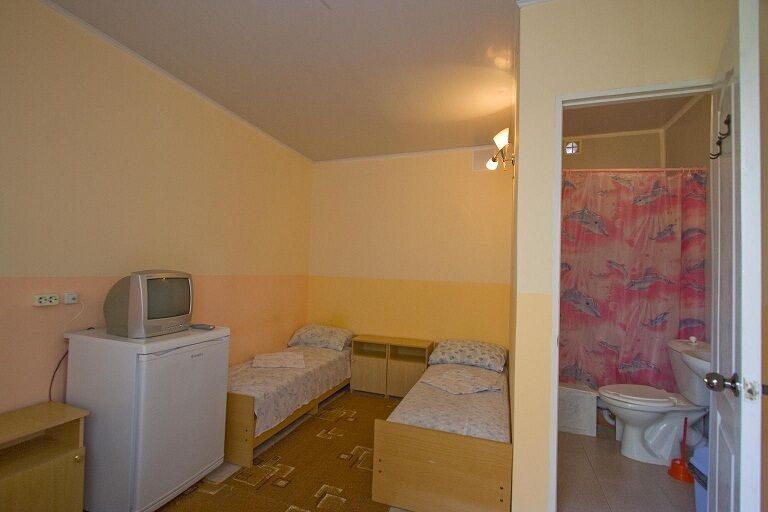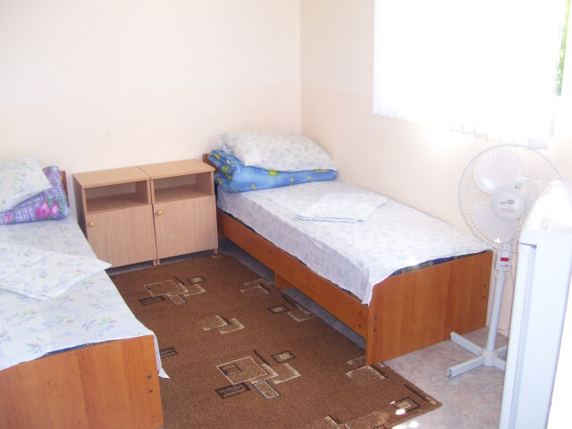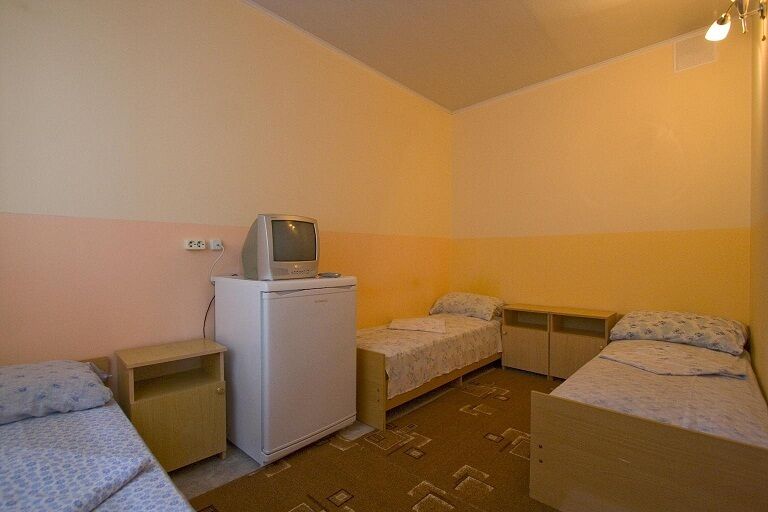 В номере: кровать, шкаф, тумбочка, холодильник, телевизор, вентилятор. Душ и туалет общего пользования на этаже.