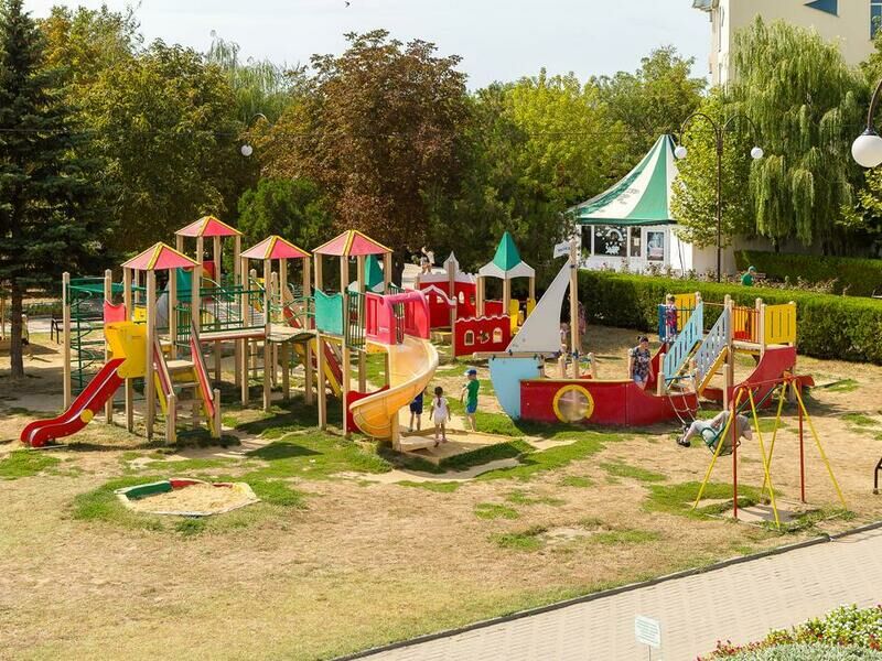 Для маленьких гостей на территории пансионата организована игровая площадка, имеется комната с воспитателем, детский клуб, бассейн, работают аниматоры. Кроме того, предусмотрена аренда стульчиков для кормления, прогулочных колясок и детских велосипедов. Собственный песчаный пляж находится в паре минут ходьбы. На пляже гостям предлагаются навесы, лежаки, шезлонги.