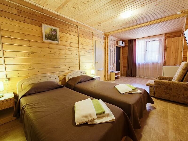 Питание предоставляется в столовой. Гостям эко-корпусов доступна вся инфраструктура санатория. К услугам гостей - открытый бассейн, банный комплекс с инфракрасной сауной, бар и летнее кафе. Для любителей активного отдыха на территории оборудован теннисный корт и спортивная площадка для игр в баскетбол, волейбол, футбольное поле. Для автовладельцев организована охраняемая парковка, есть прокат велосипедов и услуги прачечной. По вечерам в пансионате для всех отдыхающих организуются развлекательные программы.
