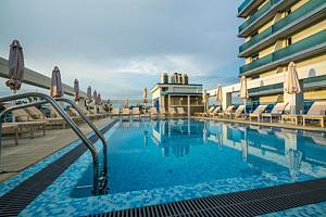 Тип бассейна: открытый бассейн, бассейн на крыше, детский бассейнРядом с бассейном: шезлонги, зонтики, полотенца, бар у бассейнаВремя работы: от 08:00 до 20:00Глубина: 60 смСтоимость
