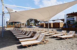 Тип пляжа: галечный, оборудованныйИнфраструктура: лежаки, зонтики, шезлонгиРасположение: в пешей доступностиВ период с 1 июня по 30 сентября 2025 года наш отель предлагает уникальную возможность насладиться отдыхом на специально оборудованном пляже Лазурь. Этот райский уголок создан для комфорта и удовольствия и станет идеальным местом для загара, пляжных игр и романтических прогулок вдоль живописного побережья.