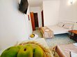 Номер оснащен: две односпальные кровати, прикроватные тумбочки, зеркало, шкаф, мини-холодильник, кондиционер, телевизор. Душ и туалет на этаже.
