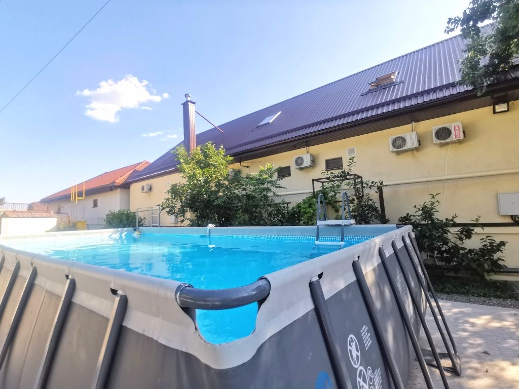 Тип бассейна: открытый бассейн, каркасный бассейнРядом с бассейном: шезлонгиПериод работы: летний сезон -