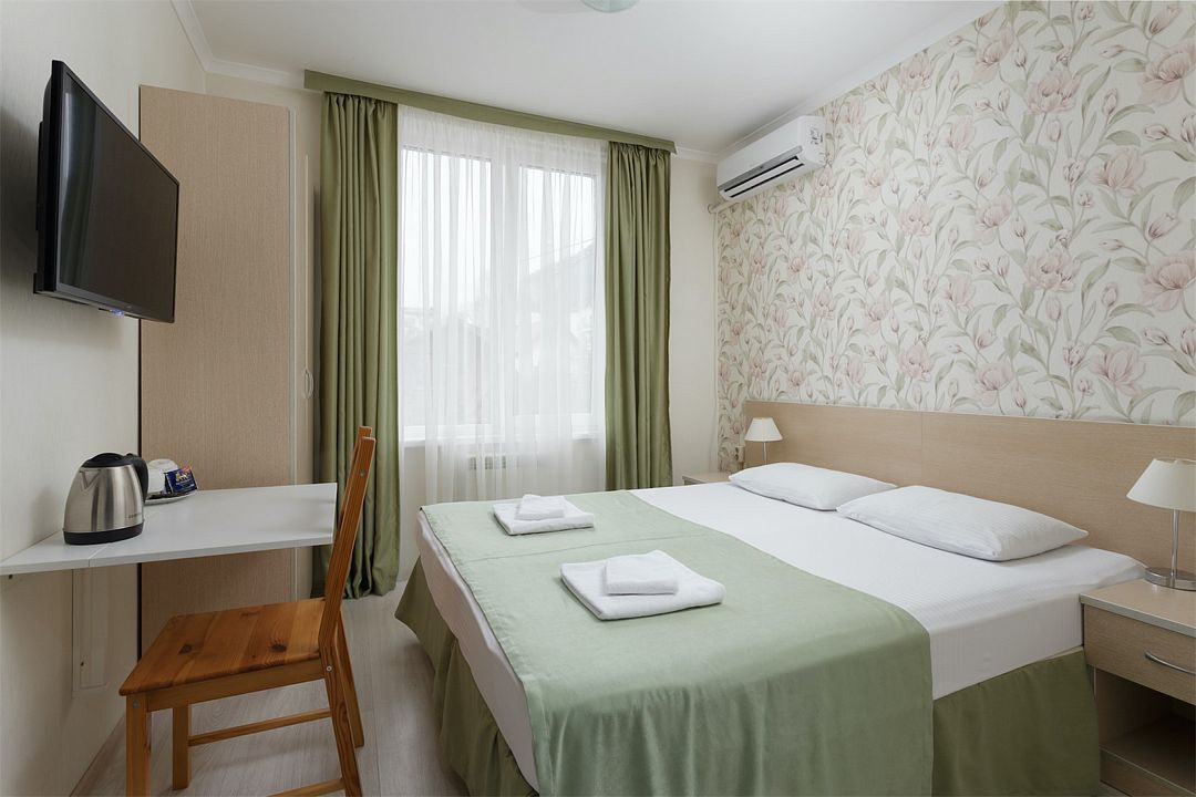 Номер небольшой, но комфортный. Есть все необходимое: чайник, чашки, фен, шампунь, мыло, холодильник, кондиционер, даже обогреватель на зиму. Ежедневно выносят мусор. Шикарный вид с балкона на горы и рассветы!