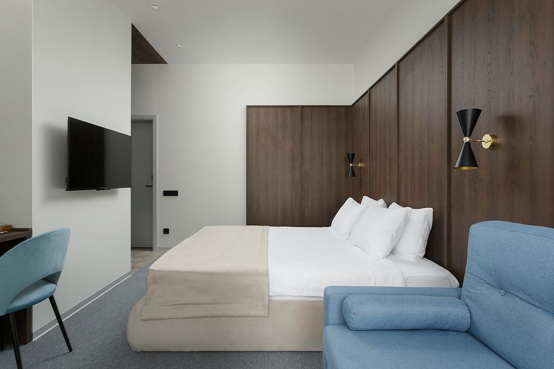 Классический номер с двуспальной кроватью и диваном