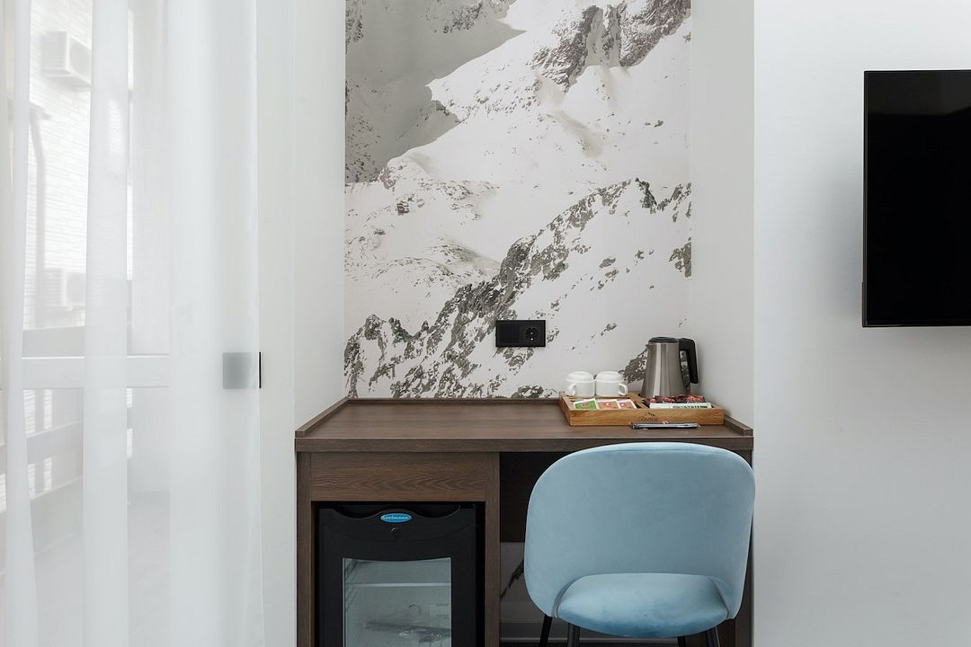 Из окна и балкона открывается шикарный вид на горы Красной поляны. Номер предназначен для одного или двух гостей.
