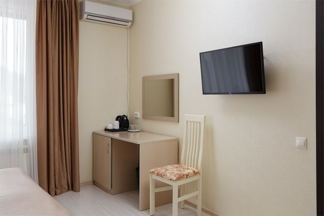 В номере есть: Wi-Fi, сплит-система, стол, современный телевизор, чайная станция (чайник, чай, сахар), фен и утюг. Номер оснащен собственной ванной комнатой с душем, туалетом и косметическими принадлежностями.