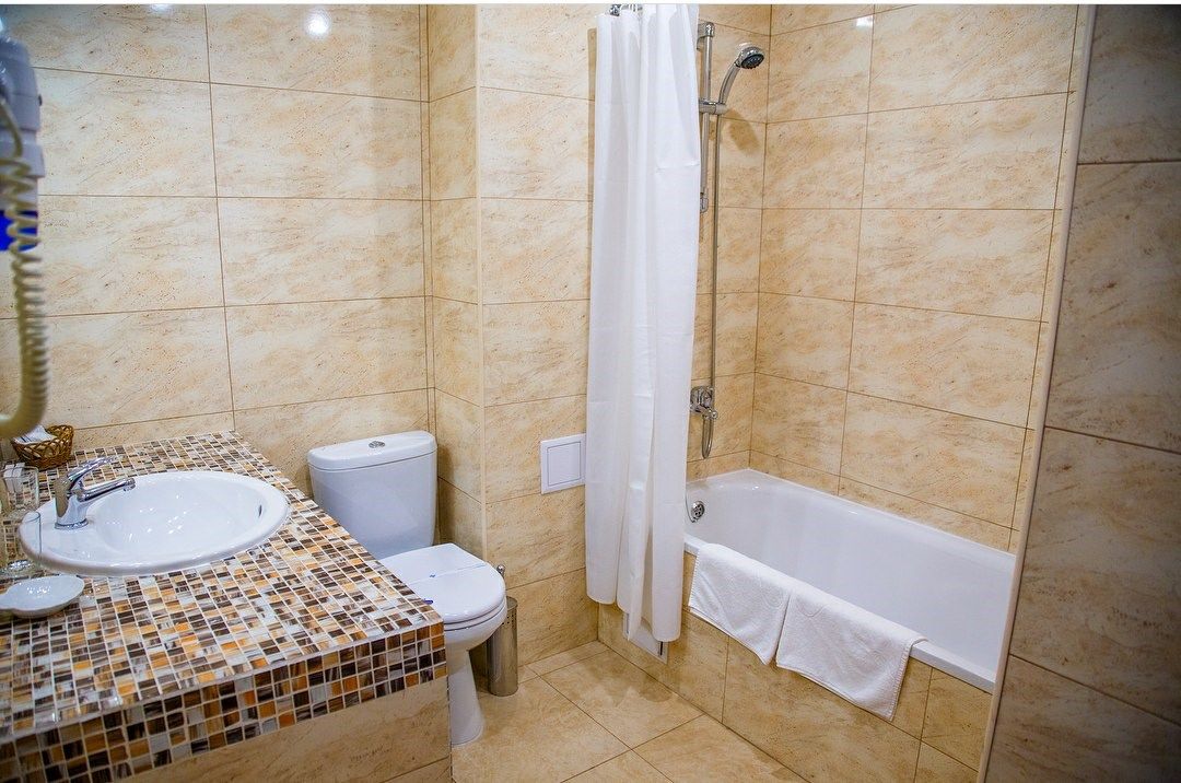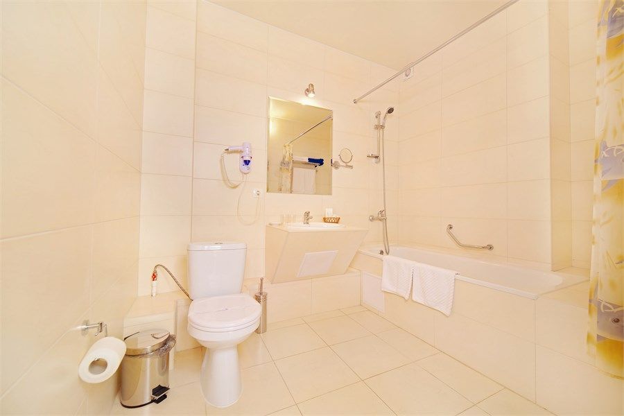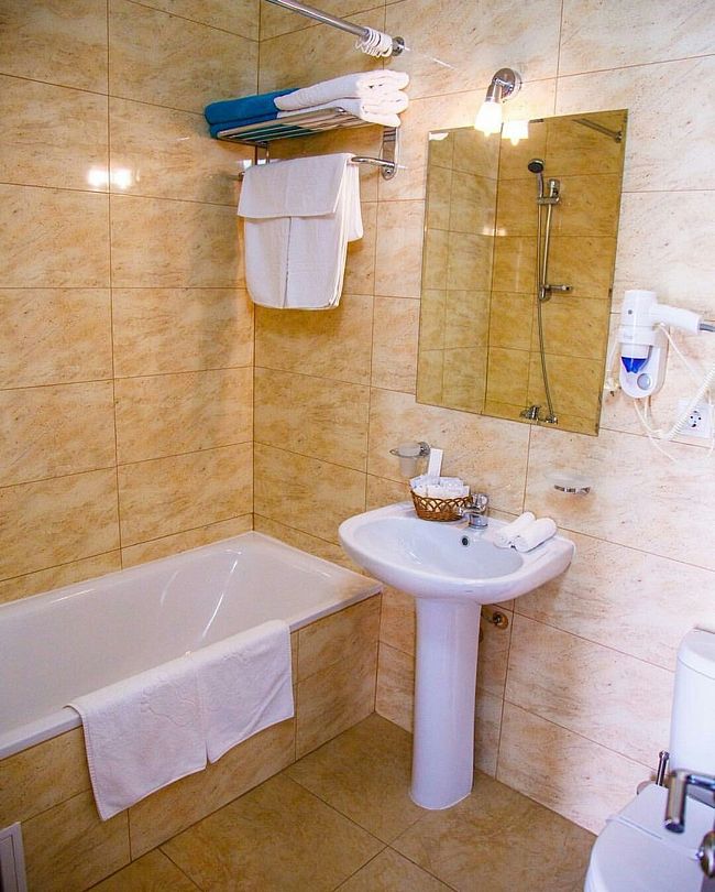 В номере: набор корпусной мебели, кондиционер, телевизор, холодильник, сейф, совмещенный санузел с ванной, туалетные принадлежности, фен, комплект банных полотенец, мыльные принадлежности, набор посуды.