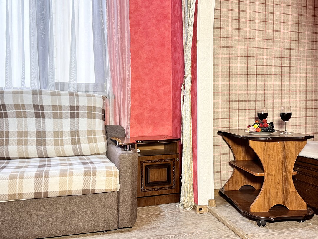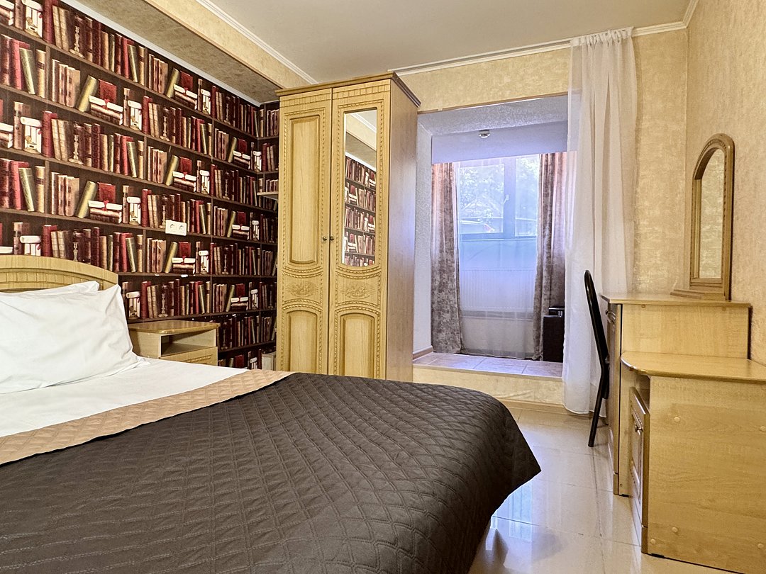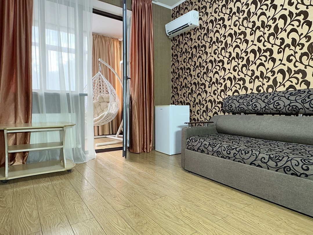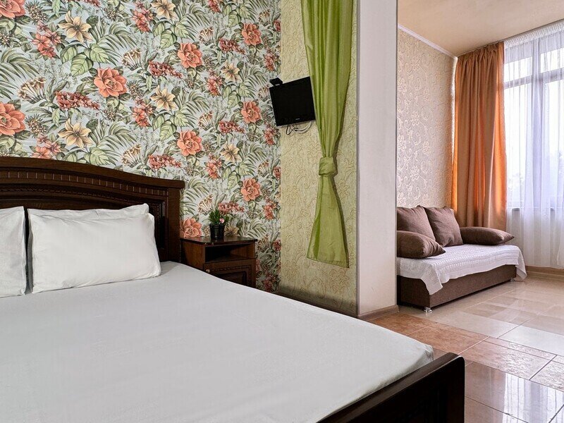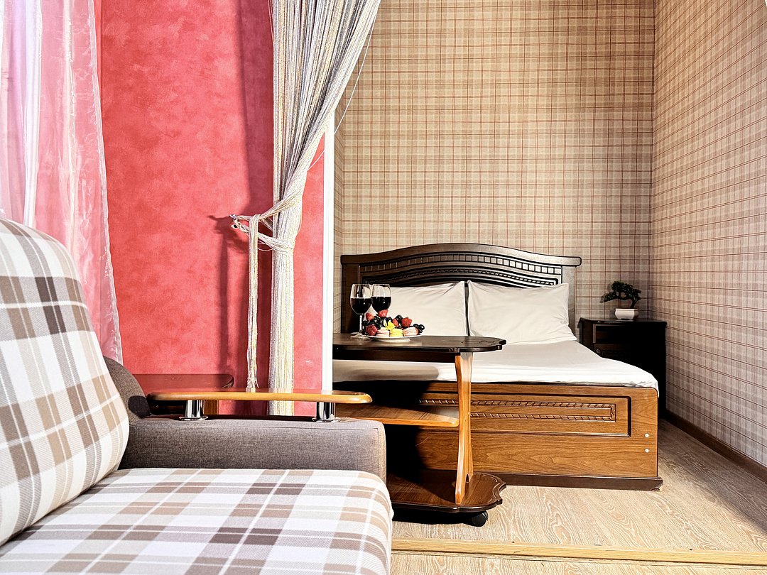 Уютный двухместный номер. В номере имеется двуспальная кровать, шкаф, гостиный уголок (диванчик, журнальный столик, телевизор, мини-холодильник), кондиционер. Номер без балкона.