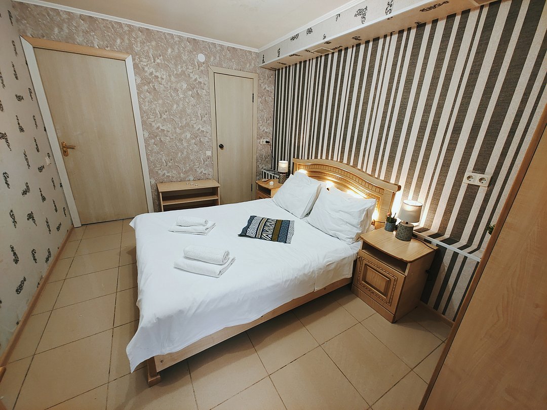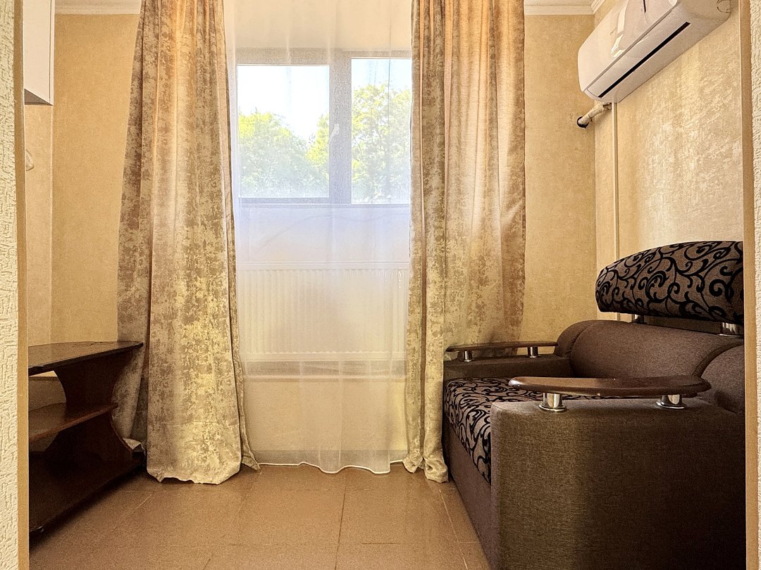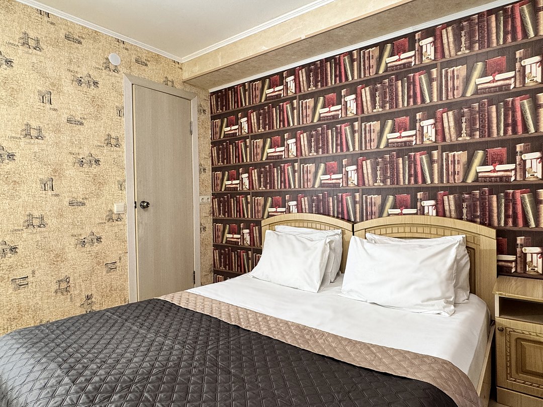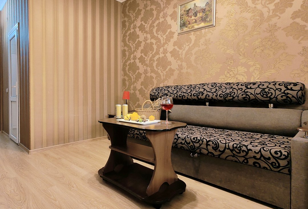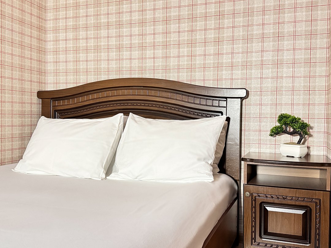 Уютный двухместный номер. В номере имеется двуспальная кровать, шкаф, гостиный уголок (диванчик, журнальный столик, телевизор, мини-холодильник), кондиционер. Номер без балкона.