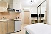 1,5-спальная кровать, с/у с душем, ТВ, сейф, мини-холодильник, кондиционер, фен, кухня и кухонные принадлежности, микроволновая печь