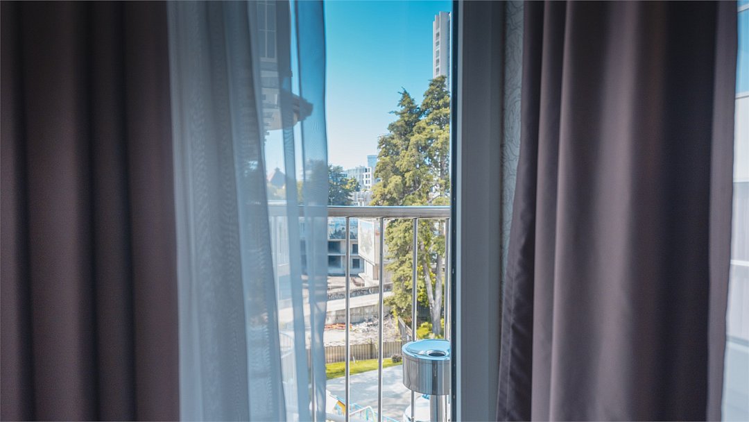 Wi-Fi, телефон, холодильник, кондиционер, фен, система безопасности, электронные замки, плита для приготовления пищи, микроволновая печь, гигиенические средства, косметические средства, двуспальная кровать, шкаф для одежды, вешалки, письменный стол, багажная тумба, зеркало, мини-бар, набор посуды, сейф, чайник, унитаз, раковина, отопление, душ, вид на город, стаканы, столовые приборы, стул, туалетные средства, панорамные окна, сушилка для белья, цифровое тв, диван-кровать, телевизор с плоским экраном, мини-кухня, частичный вид на море, номер для некурящих, без питомцевВ гостиничном номере