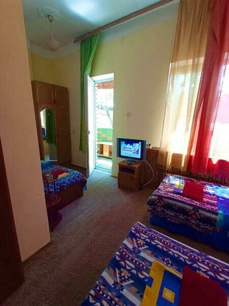 Три односпальные кровати, шкаф, тумбочки прикроватные, кондиционер, телевизор, санузел (душ+туалет) НА ЭТАЖЕ, холодильник на этаже