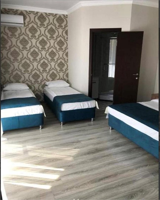 Двуспальная кровать и 1 односпальная кровать, мини холодильник, телевизор, кондиционер. с/у, душ.