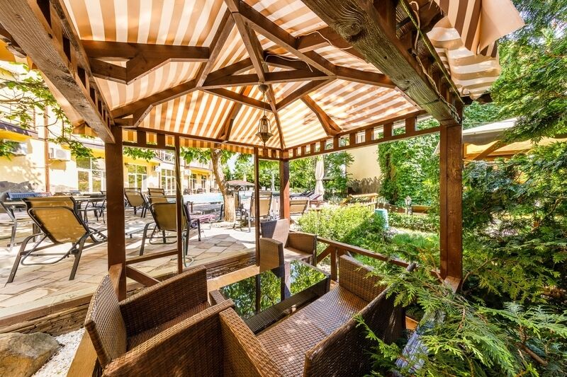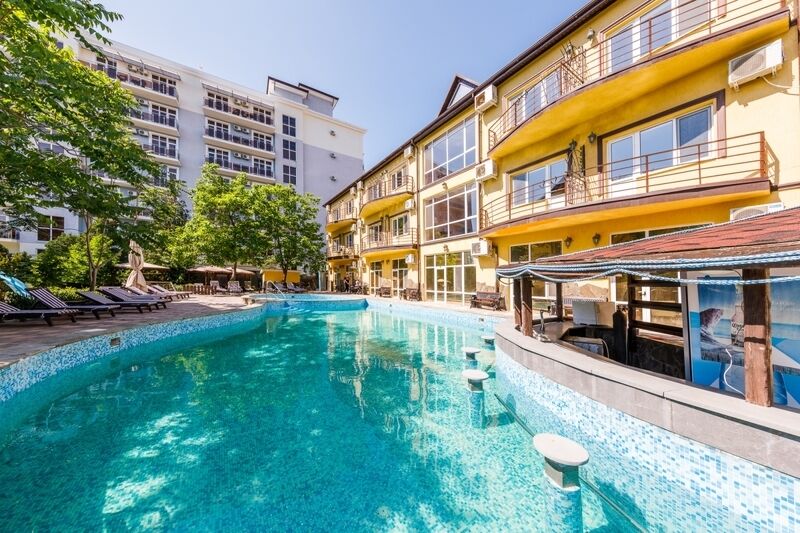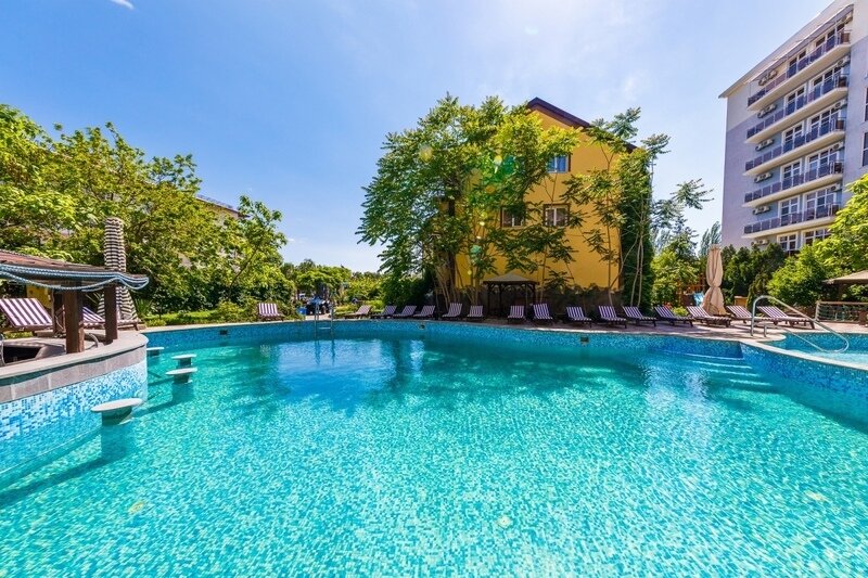 Тип бассейна: открытый бассейнВода в бассейне: подогреваемый бассейнРядом с бассейном: шезлонги, бар у бассейнаДетский сезонный бассейн